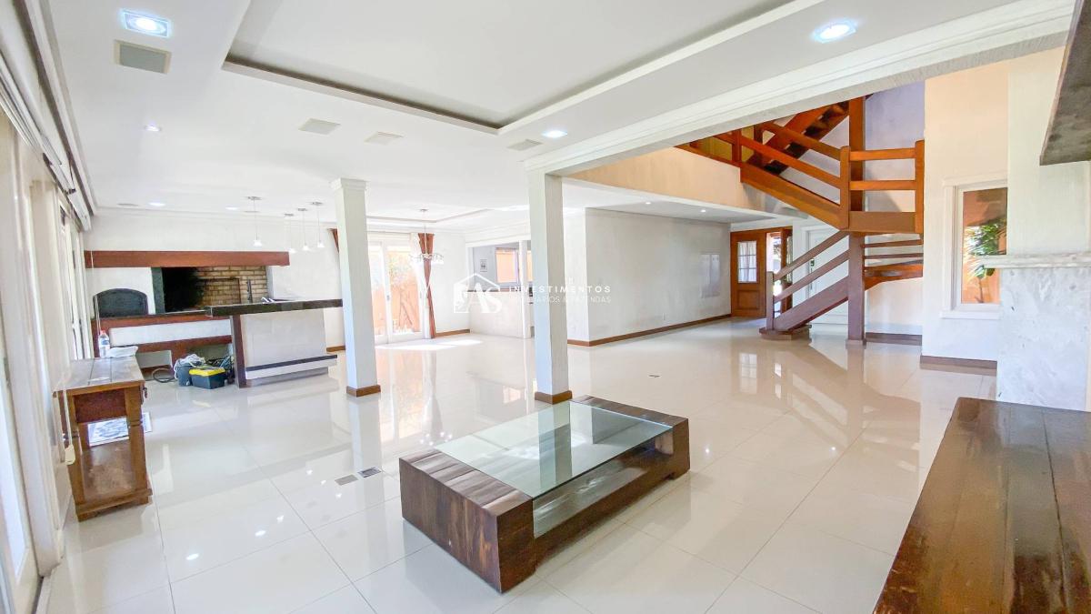 Com uma área privativa de 390m², esta residência impressiona desde o primeiro olhar. Ao adentrar, você é recebido por uma atmosfera de requinte e bom gosto, com uma distribuição inteligente dos espaços. A sala de estar e jantar são integradas, criando um ambiente amplo e acolhedor, perfeito para receber amigos e familiares.