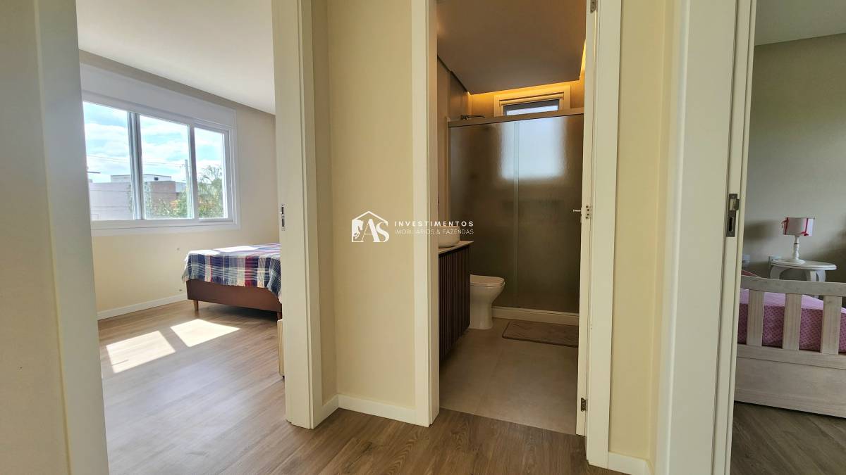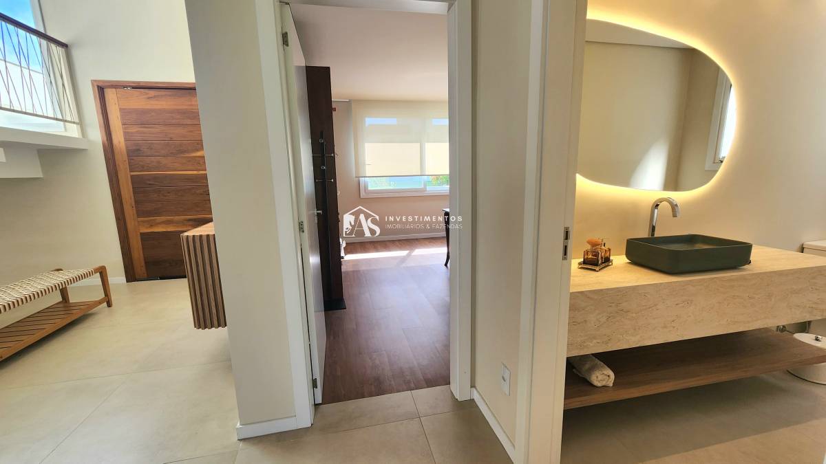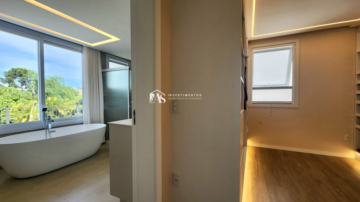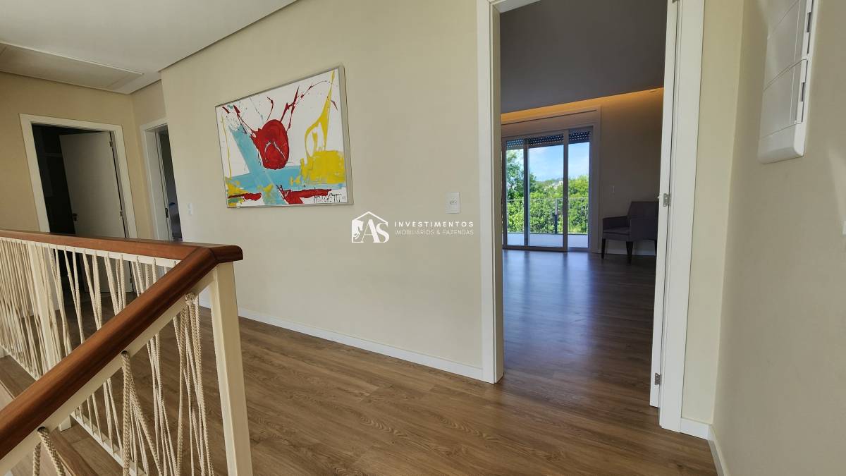 No andar superior, a área íntima conta com 3 dormitórios, incluindo uma suíte master imponente, equipada com amplo closet e uma banheira de imersão, ideal para momentos de relaxamento com vista privilegiada para a natureza.
