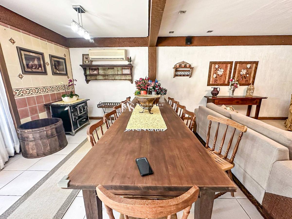 Sala de Estar e Jantar: A sala de estar e jantar é composta por 4 ambientes distintos, todos elegantemente decorados e incluindo uma charmosa lareira, perfeita para momentos de descontração e convívio social.