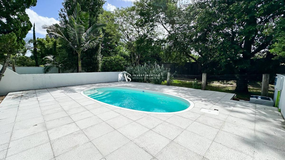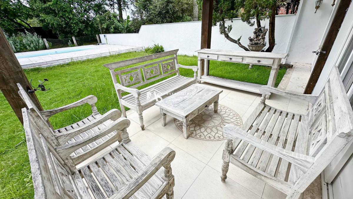 A área externa desta residência é um oásis de tranquilidade. O jardim, espaçoso, envolve a propriedade, criando um ambiente sereno e acolhedor. A piscina, totalmente reformada, adiciona um toque de glamour, proporcionando momentos refrescantes de lazer nos dias ensolarados.