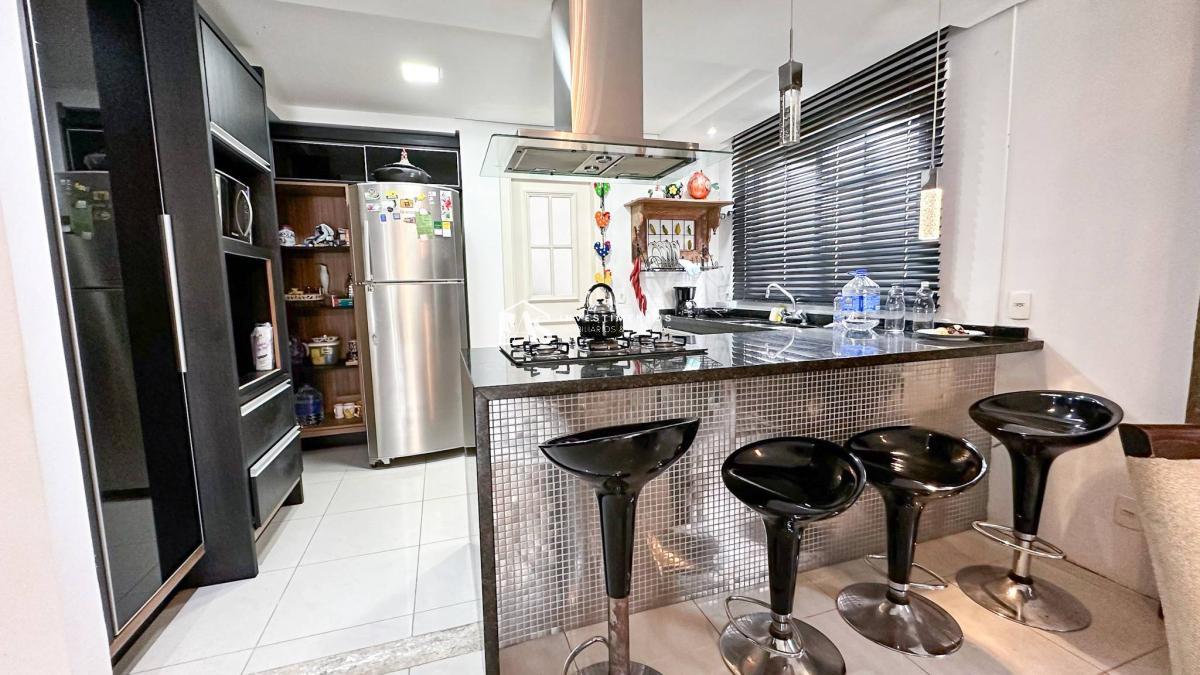 A cozinha, completamente equipada, é um convite para a criatividade culinária, enquanto o espaço gourmet oferece uma atmosfera única para eventos especiais.