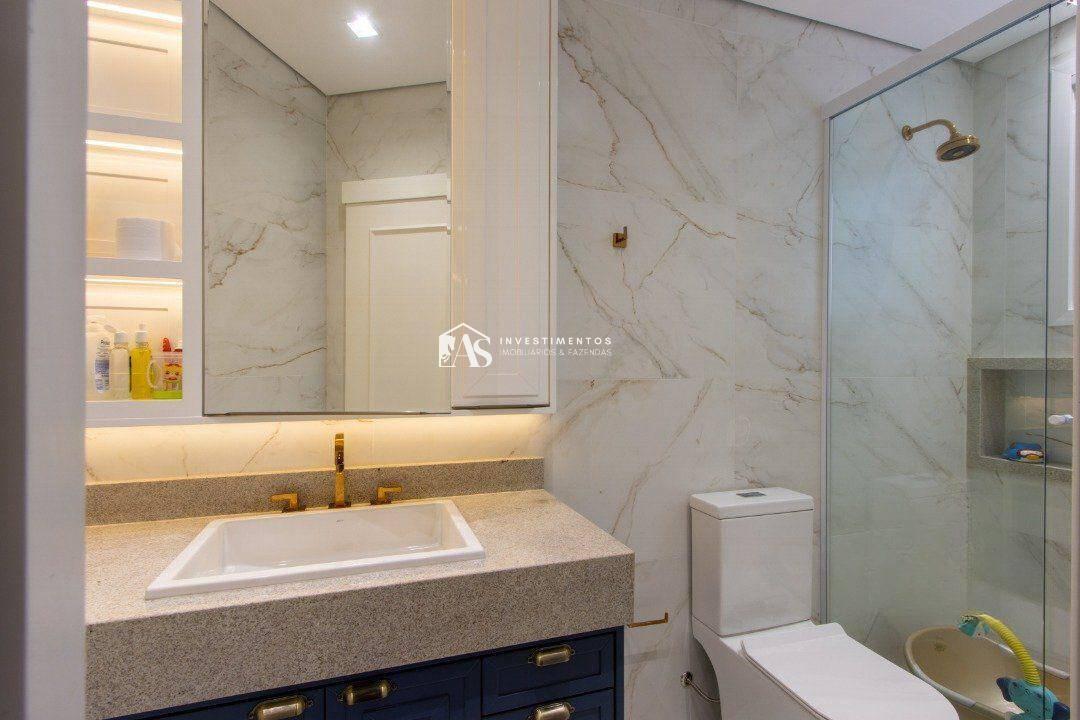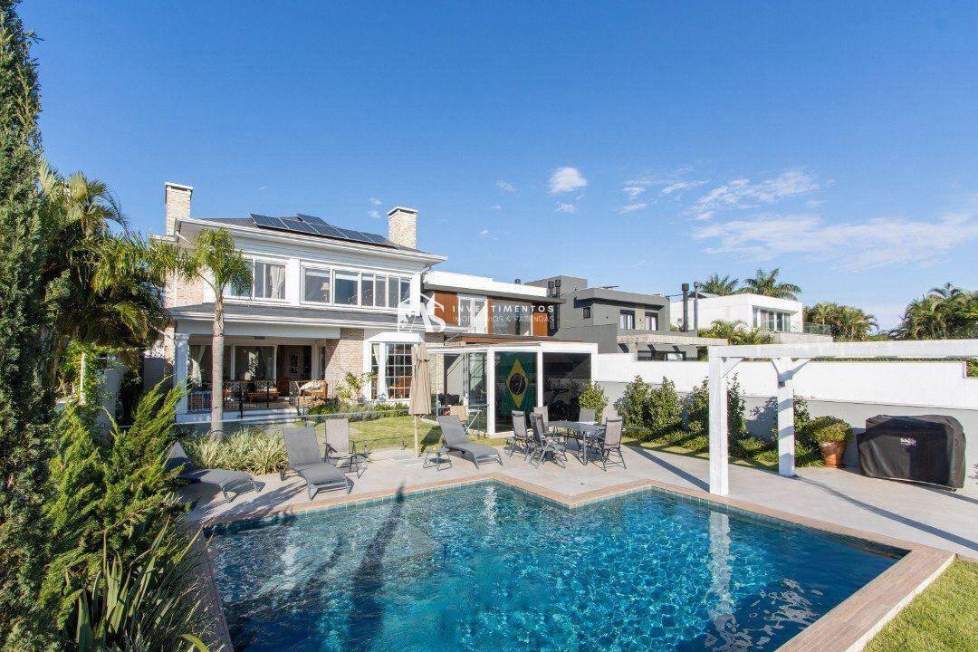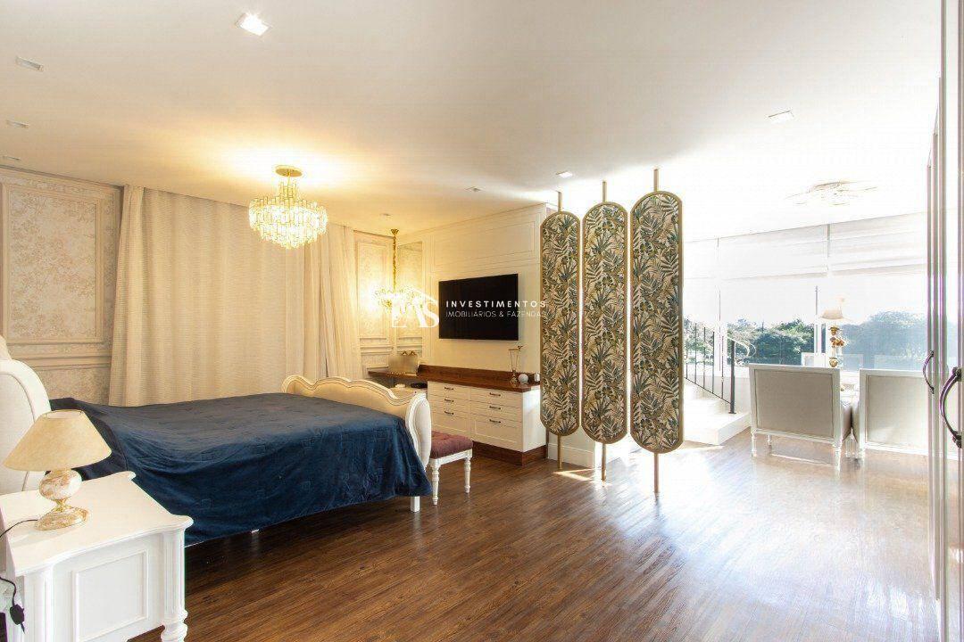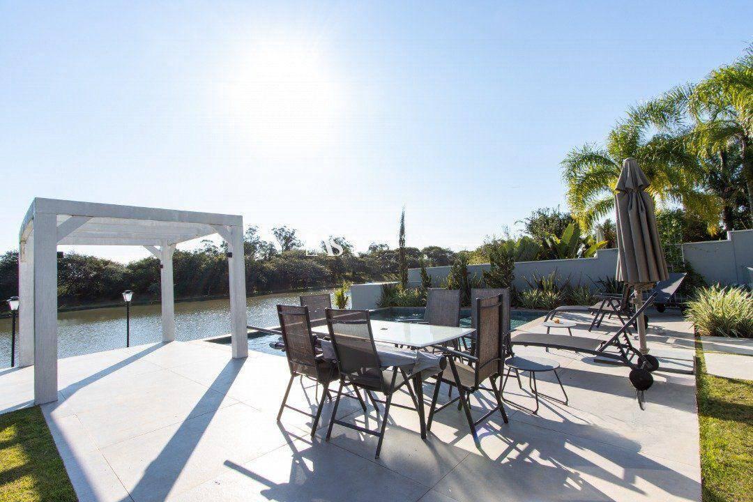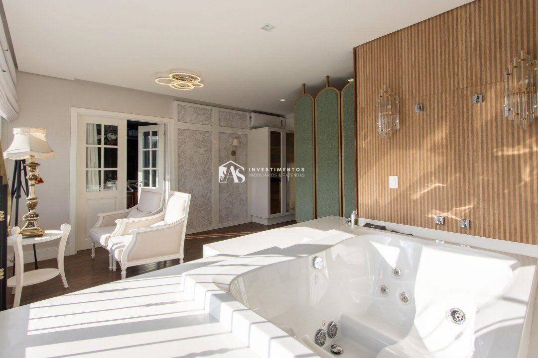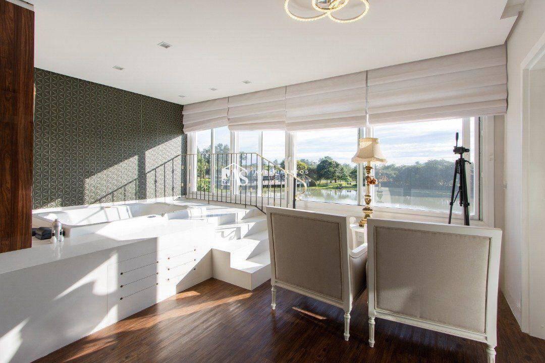 Suítes: A casa possui 4 suítes, incluindo uma suíte master super ampla com um closet espaçoso e uma jacuzzi que oferece uma vista deslumbrante para o lago navegável do condomínio.