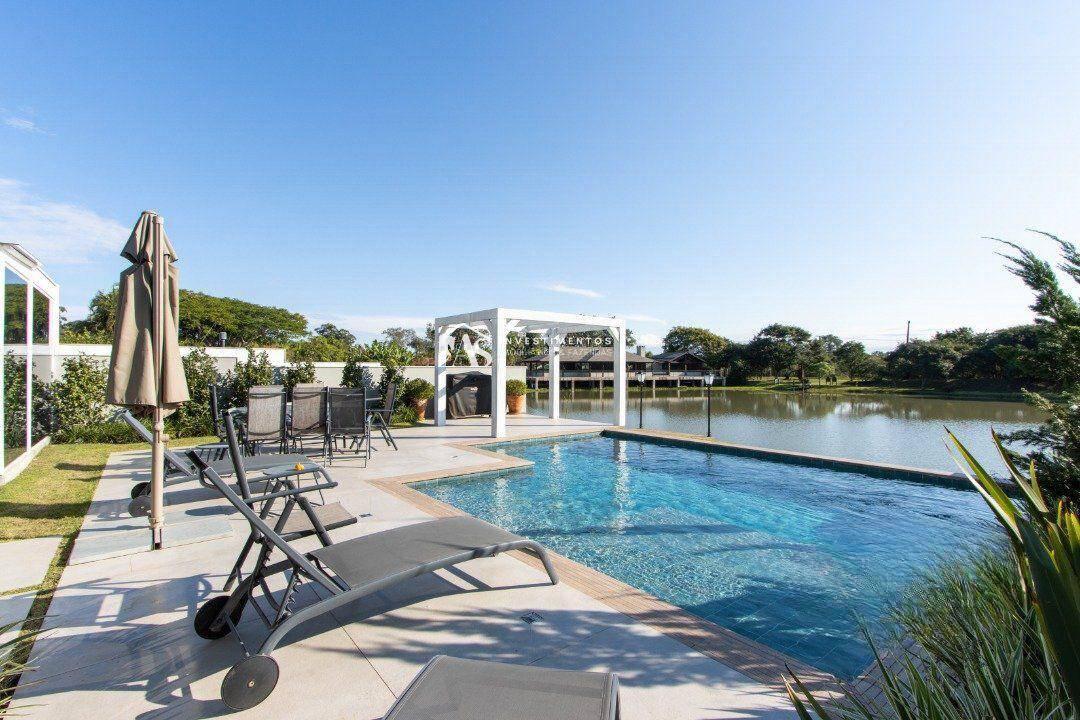 Espaço Gourmet: O espaço gourmet é um verdadeiro destaque, com uma vista incrível para o lago. Equipado com parrilla, fogão a lenha e adega, é perfeito para receber amigos e familiares.
