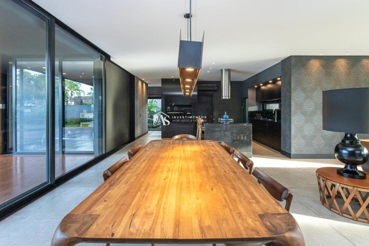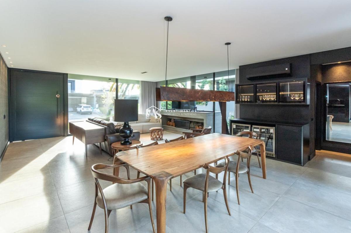 A área social da casa é um espetáculo à parte. A sala de estar e jantar, totalmente integradas com a cozinha, criam um espaço contínuo e harmonioso, perfeito para receber amigos e familiares.