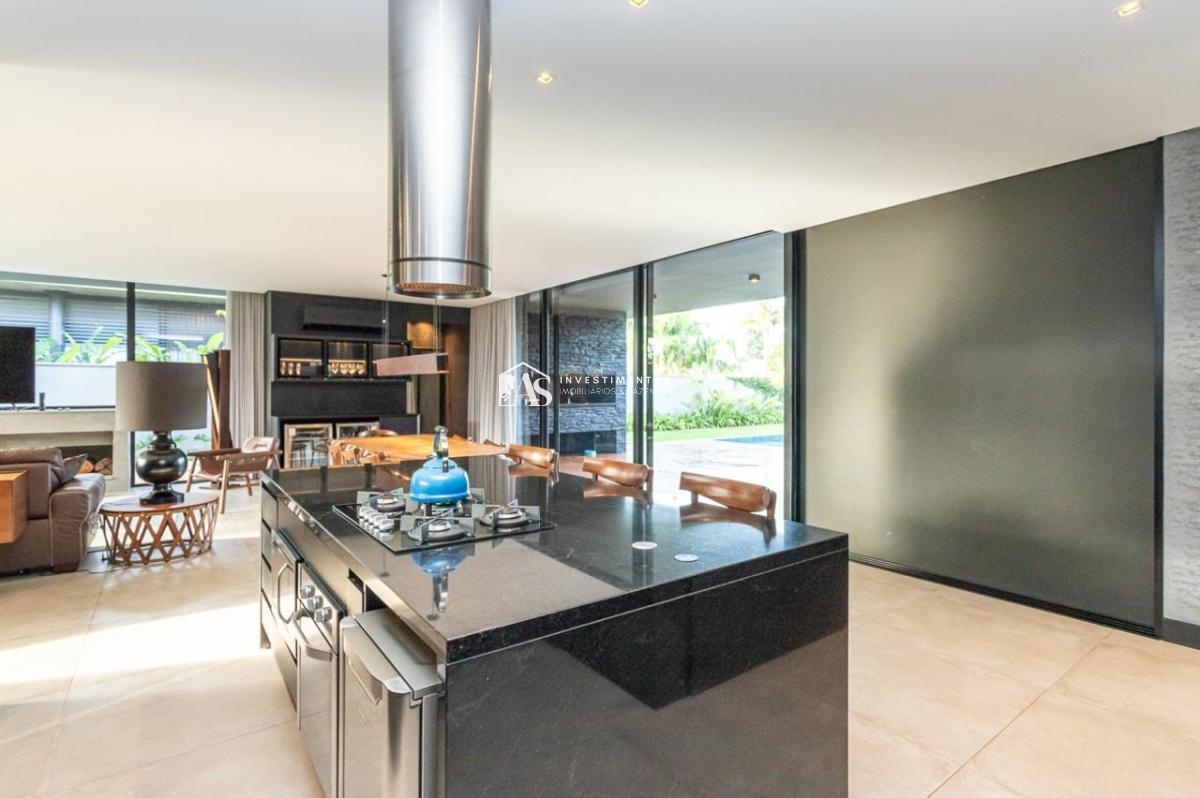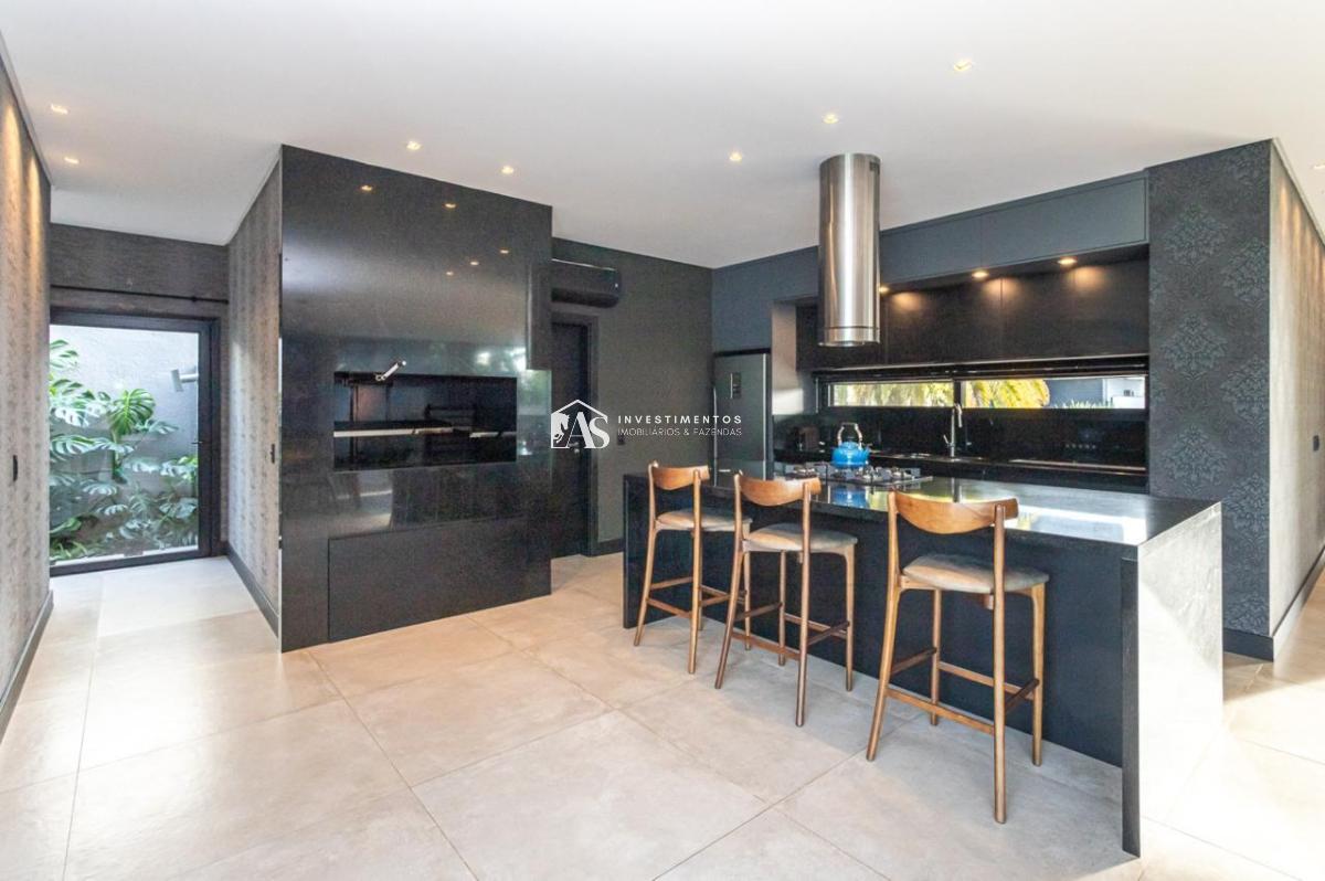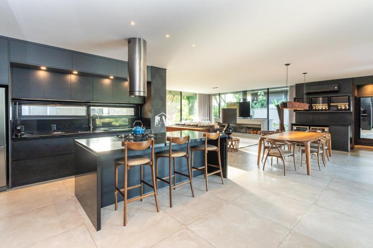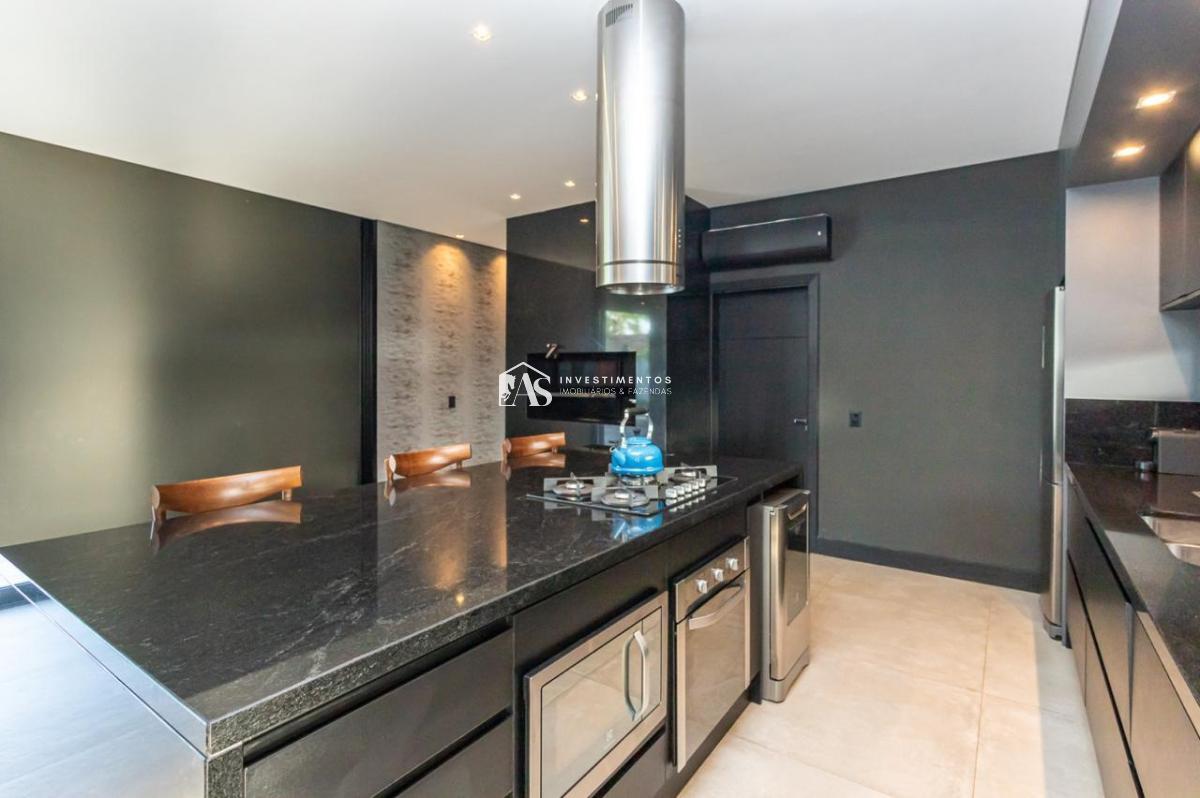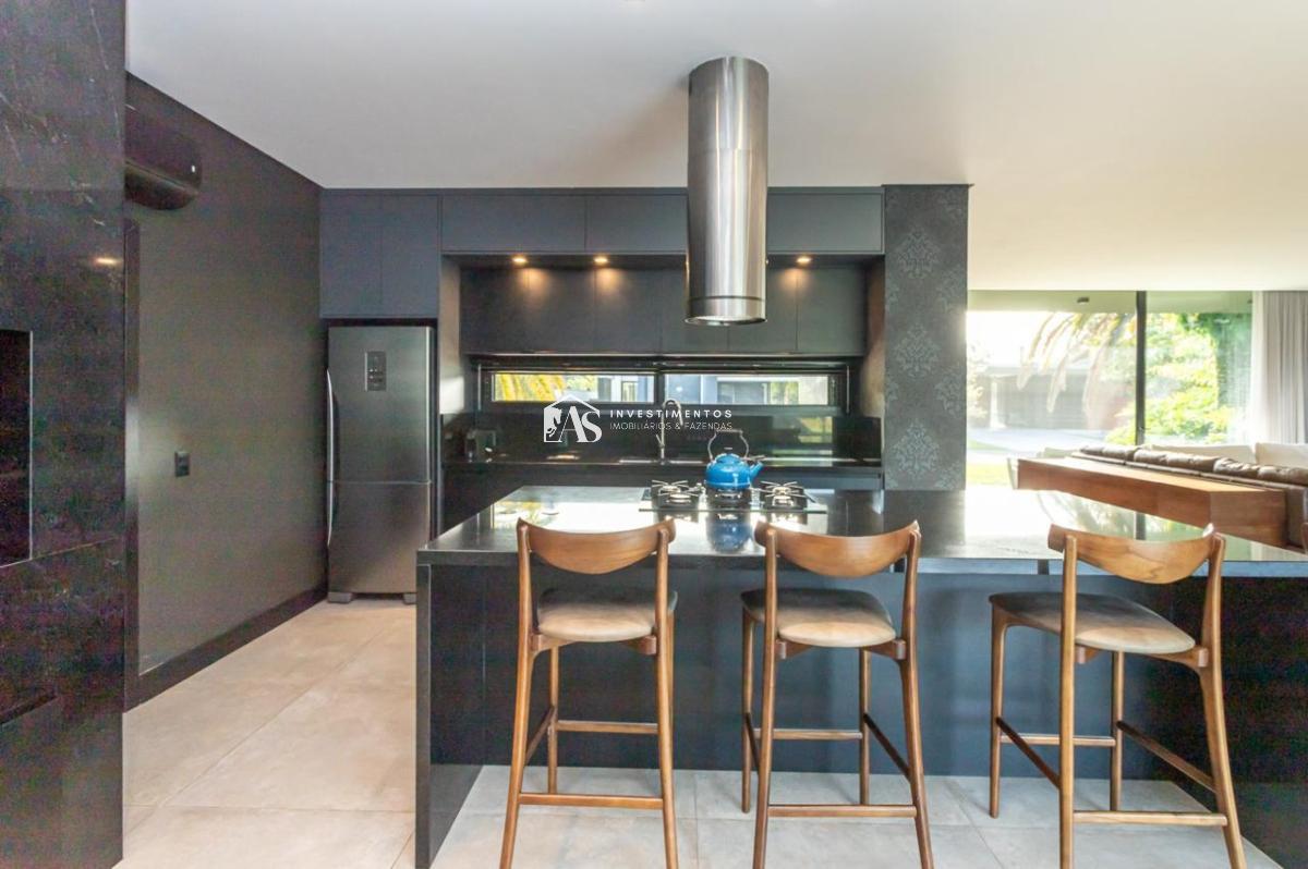 A cozinha, moderna e bem equipada, é um destaque desta residência. Projetada para atender aos mais altos padrões, ela combina funcionalidade e estilo, facilitando a preparação de refeições e o convívio social.