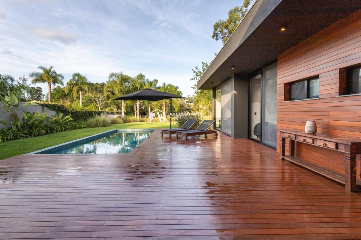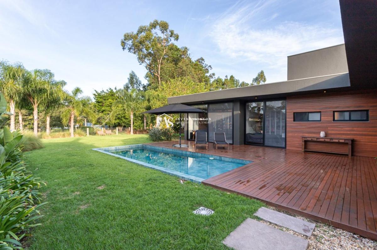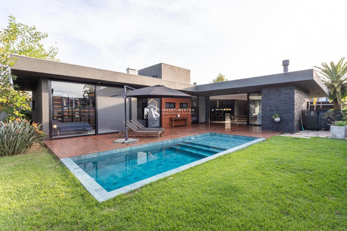 Esta residência no Terra Ville Belém Novo Golf Club é uma oportunidade imperdível para clientes exigentes e de bom gosto que buscam uma casa térrea, moderna e praticamente nova, com três suítes, áreas de estar e jantar integradas, churrasqueira interna, lareira, e um maravilhoso espaço gourmet externo com piscina.