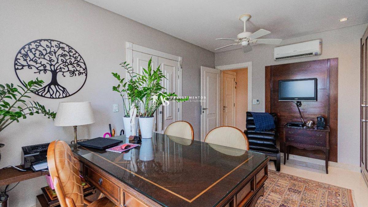 A residência é equipada com 2 escritórios, uma adega requintada e três amplas sacadas que presenteiam seus moradores com vistas deslumbrantes para o condomínio.