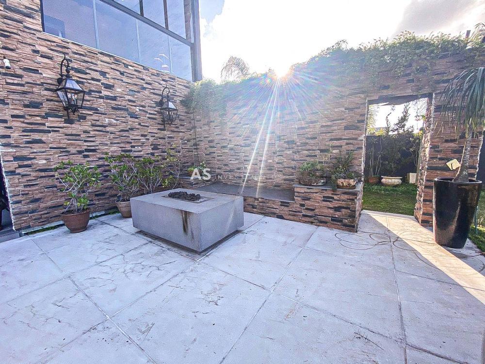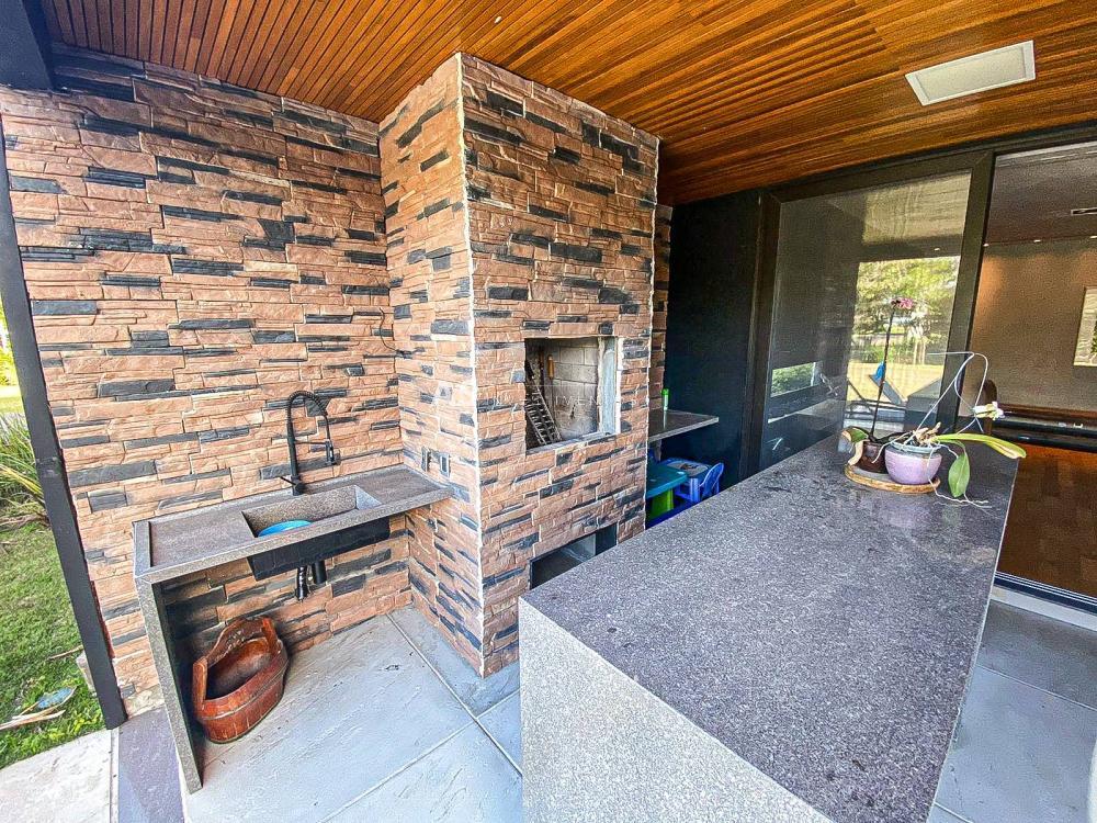 O lindo pátio com paisagismo e irrigação com água do lago é um convite para viver momentos de lazer ao ar livre, com chuveiro externo quente e frio, espaço gourmet externo com churrasqueira, além de uma lareira a gás externa e uma horta com irrigação.