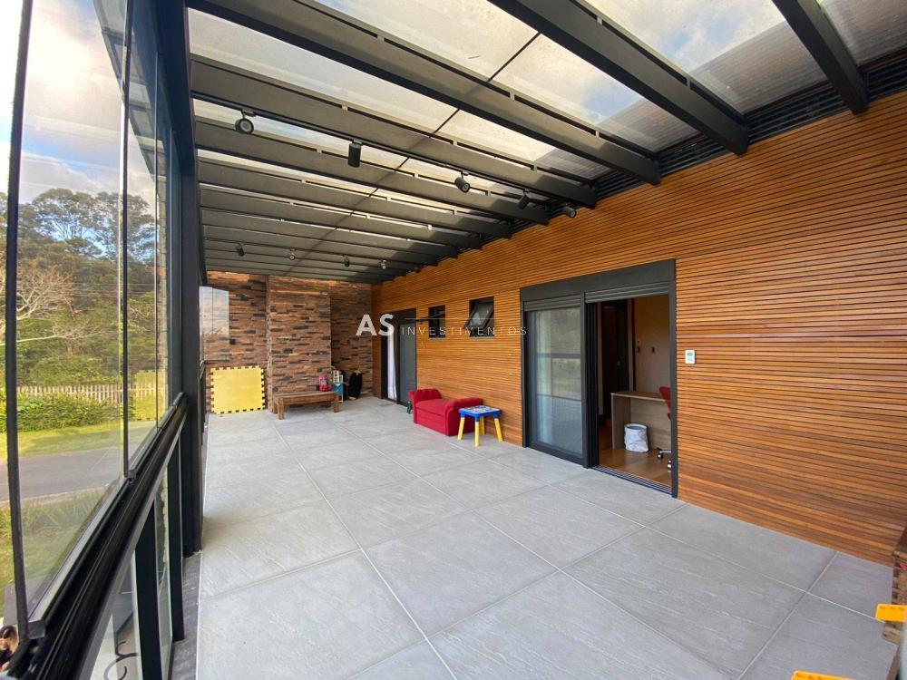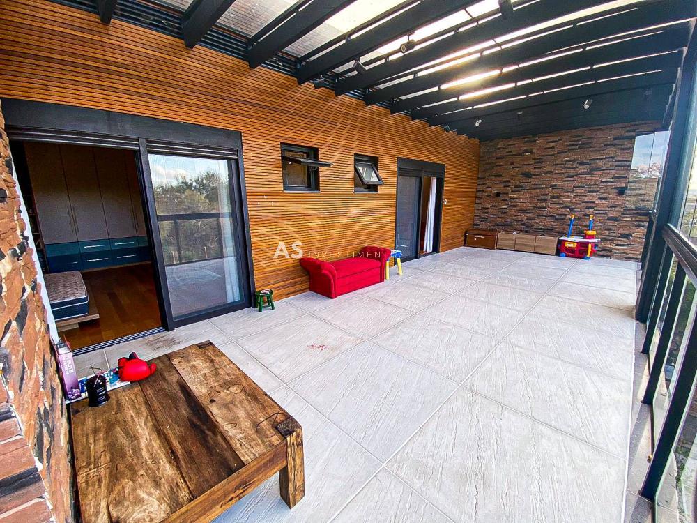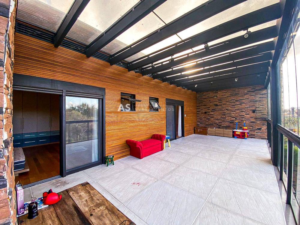 O terraço envidraçado é um ponto alto da casa, oferecendo uma vista deslumbrante e comum a duas suítes, ideal para momentos de relaxamento e contemplação.