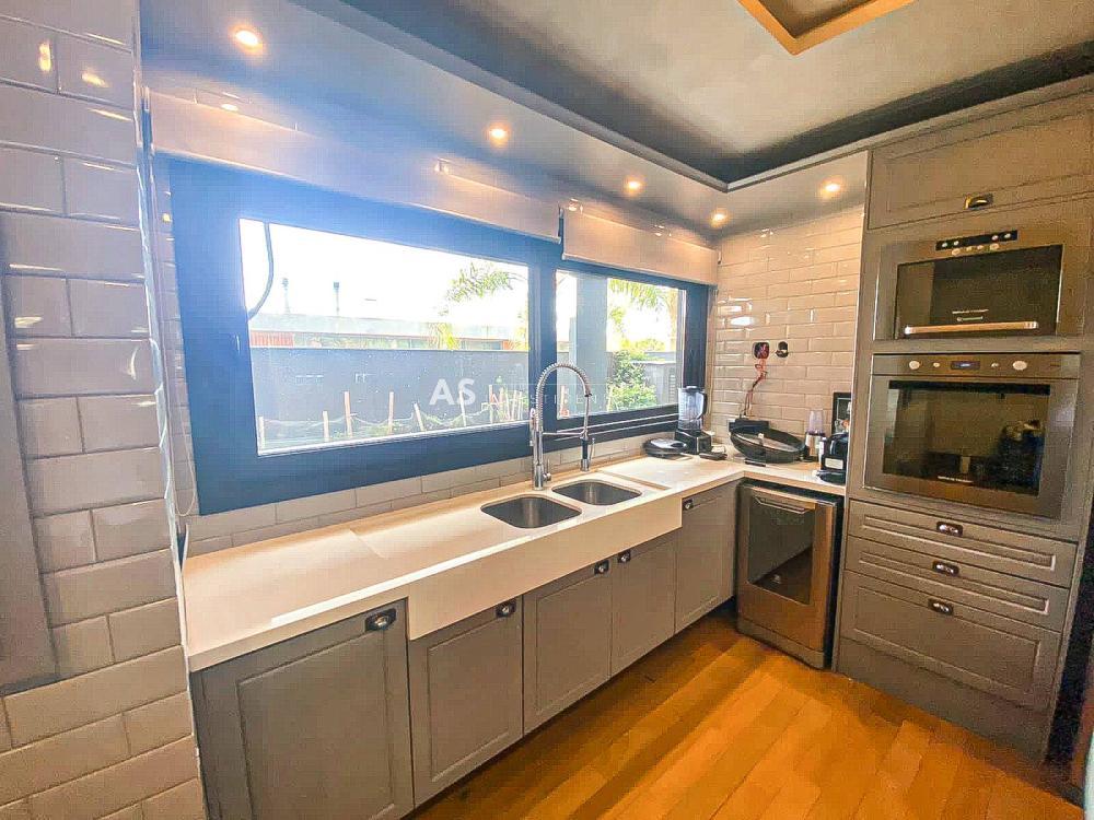 A casa ainda conta com quarto de empregada com banheiro, área de serviço, despensa e garagem para 6 carros.