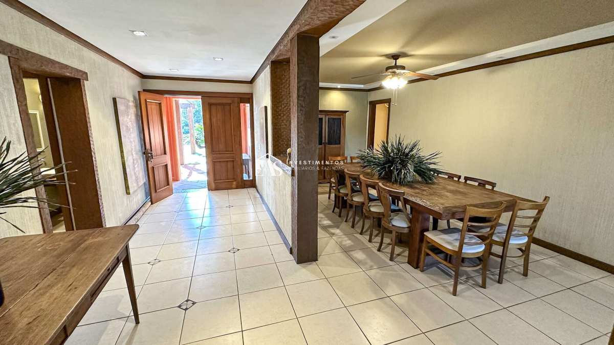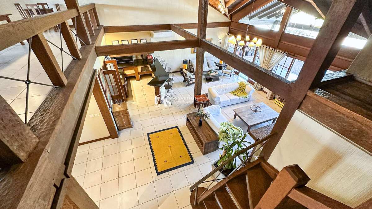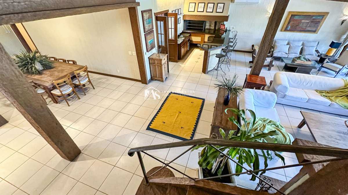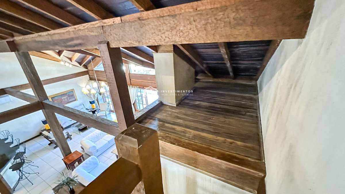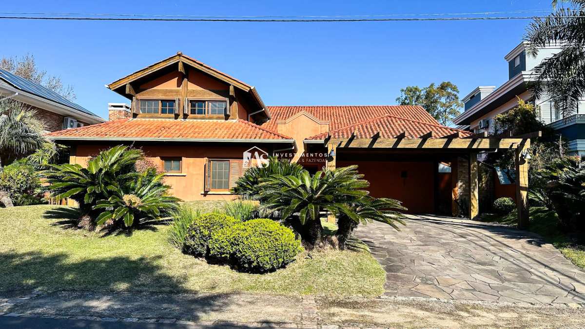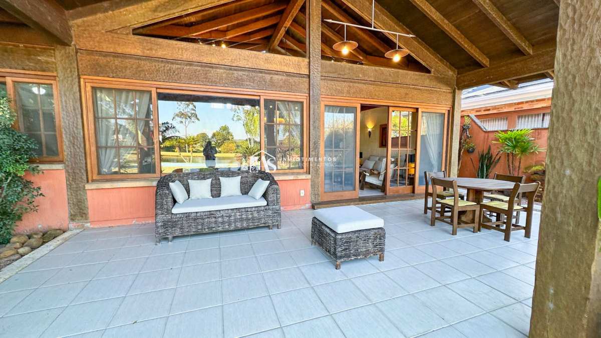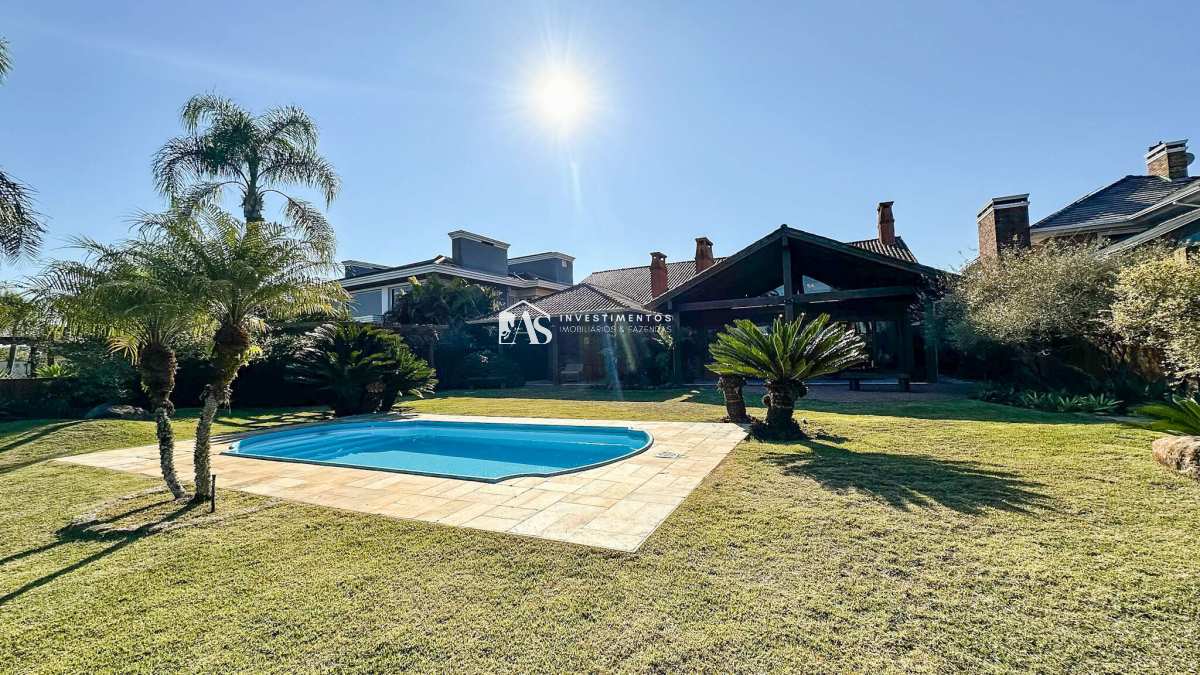 Com uma área construída de 596 m2, a casa dispõe de 4 suítes luxuosas, sendo 2 delas equipadas com banheira de hidromassagem e uma suíte para hóspedes.