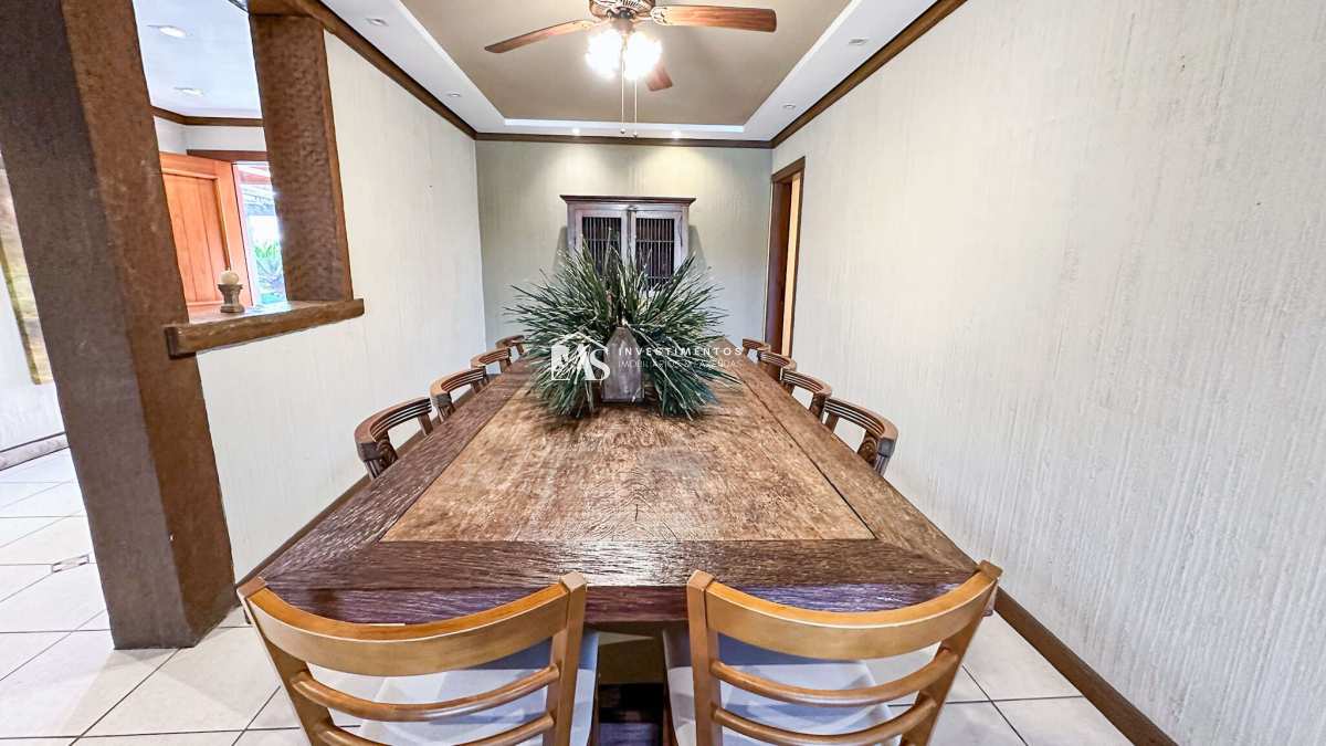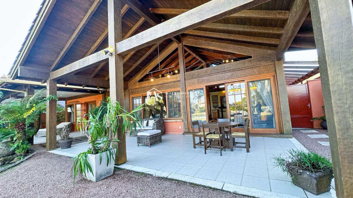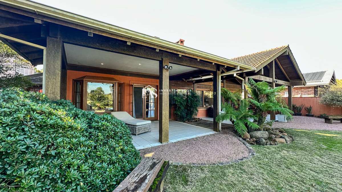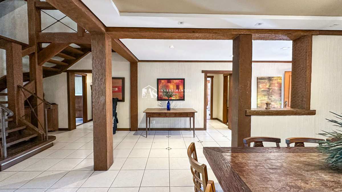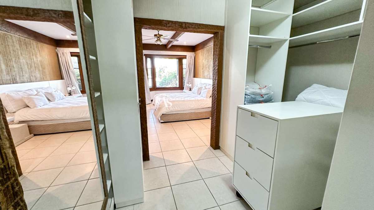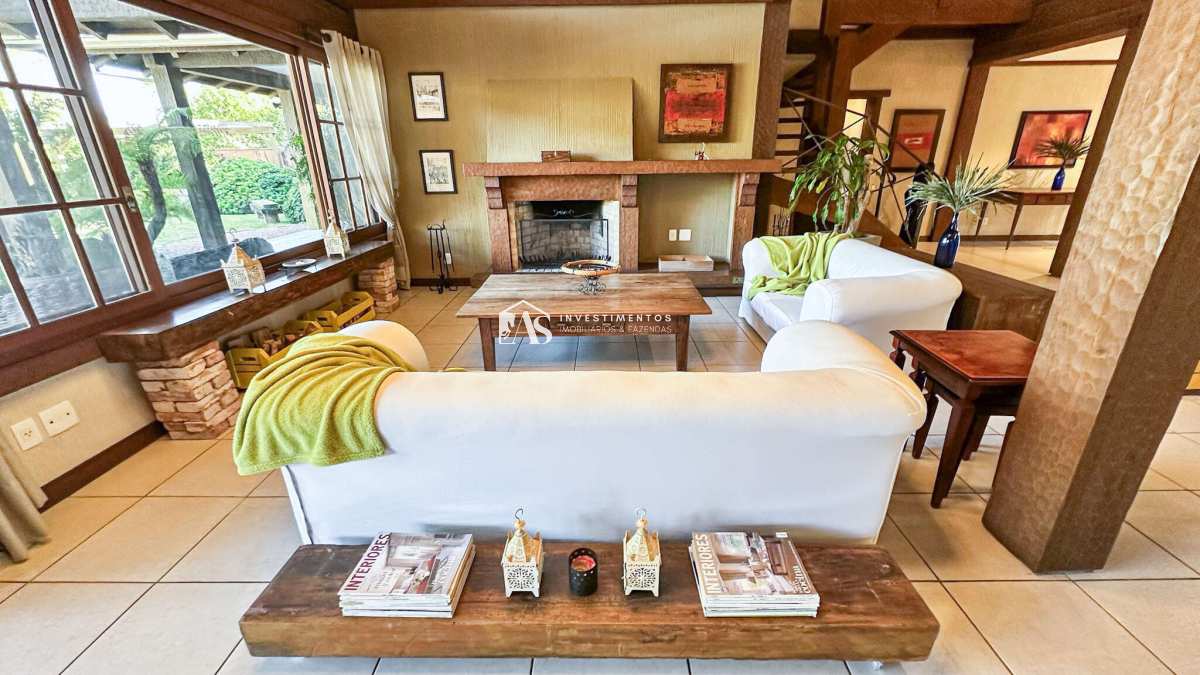 Com uma área construída de 596 m2, a casa dispõe de 4 suítes luxuosas, sendo 2 delas equipadas com banheira de hidromassagem e uma suíte para hóspedes.