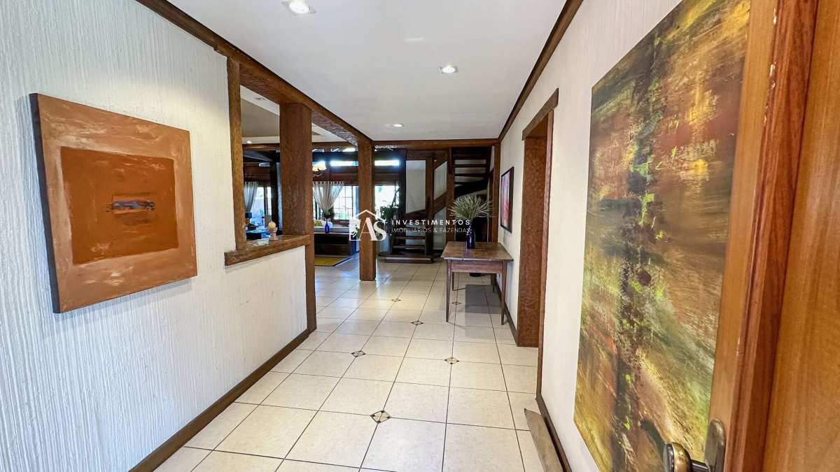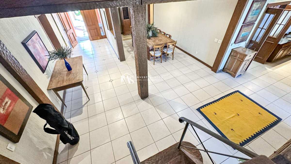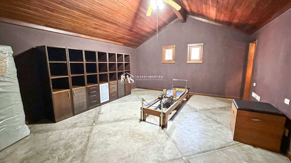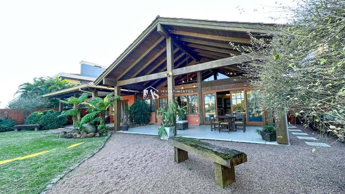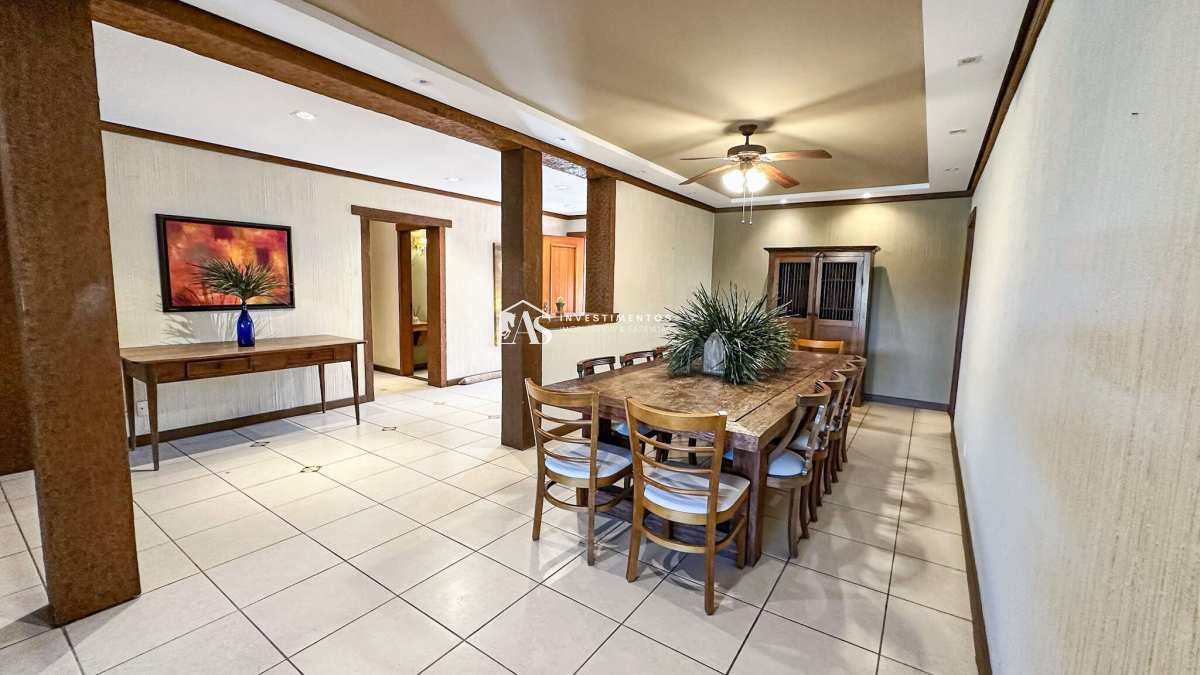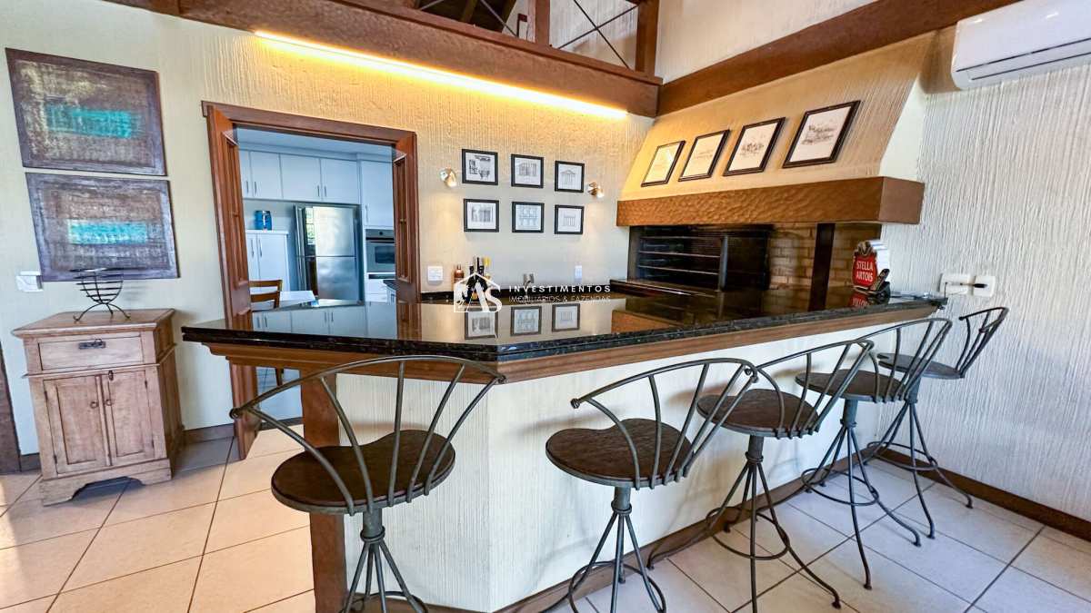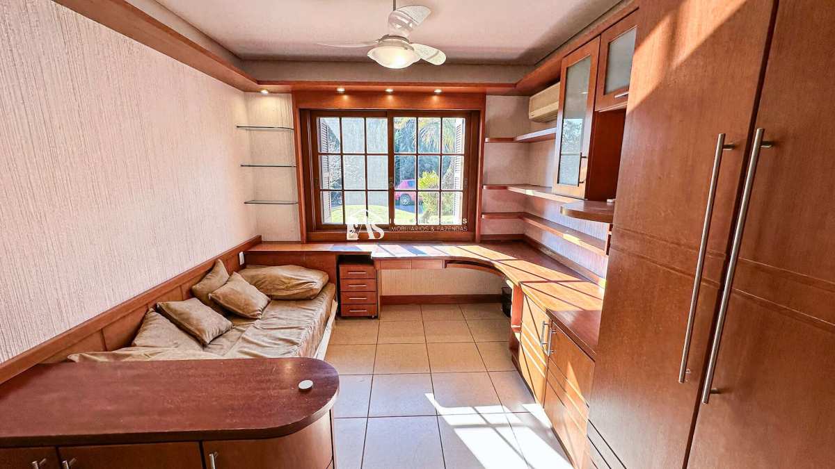 Com uma área construída de 596 m2, a casa dispõe de 4 suítes luxuosas, sendo 2 delas equipadas com banheira de hidromassagem e uma suíte para hóspedes.