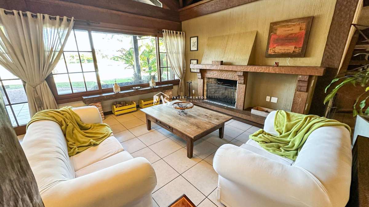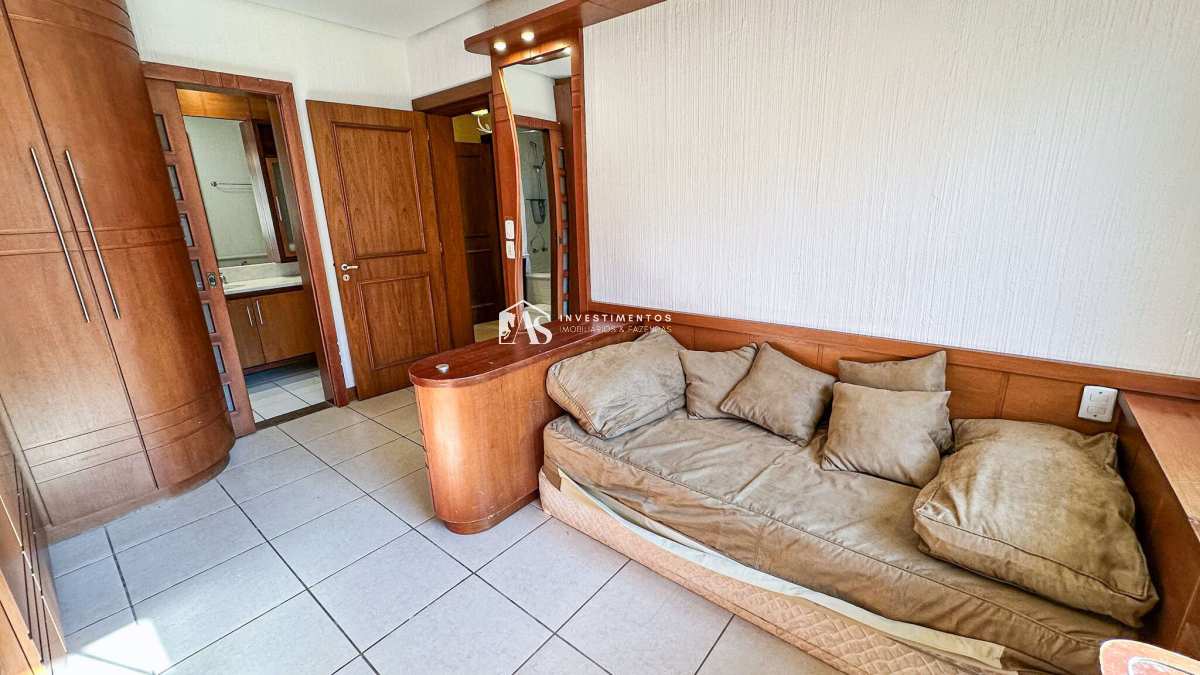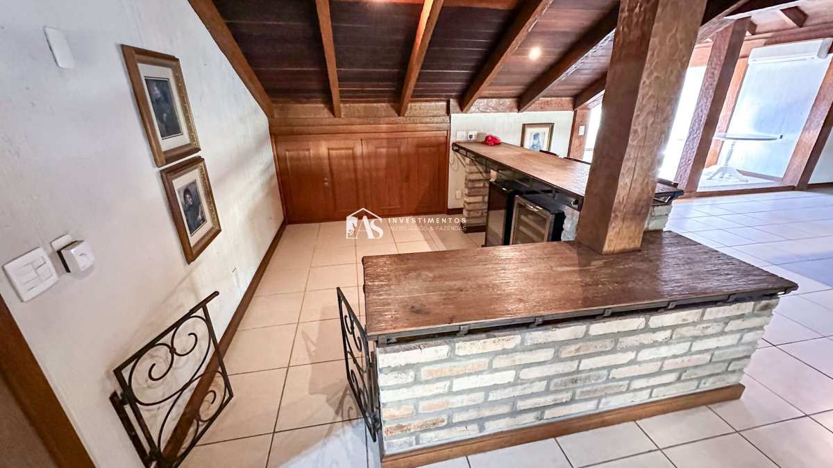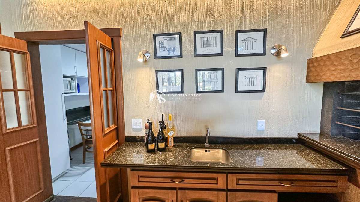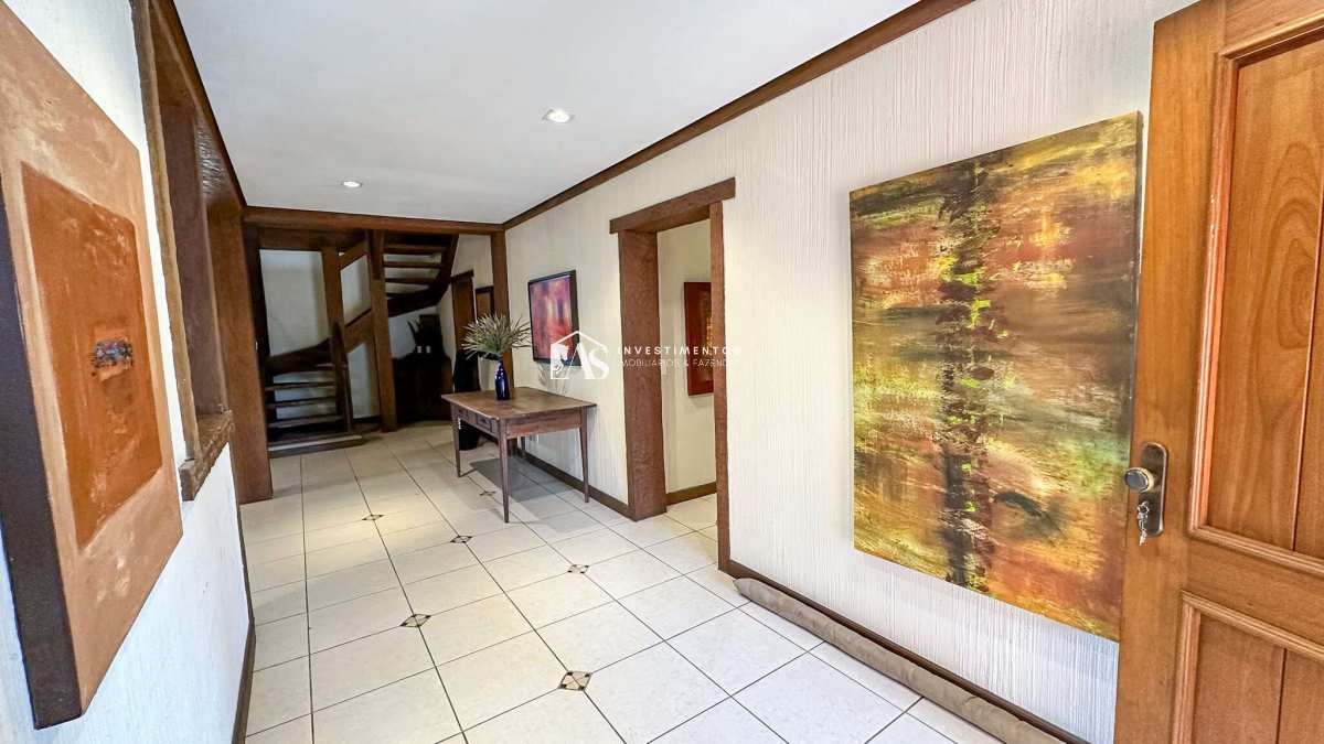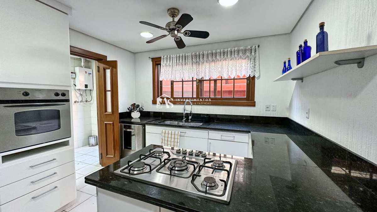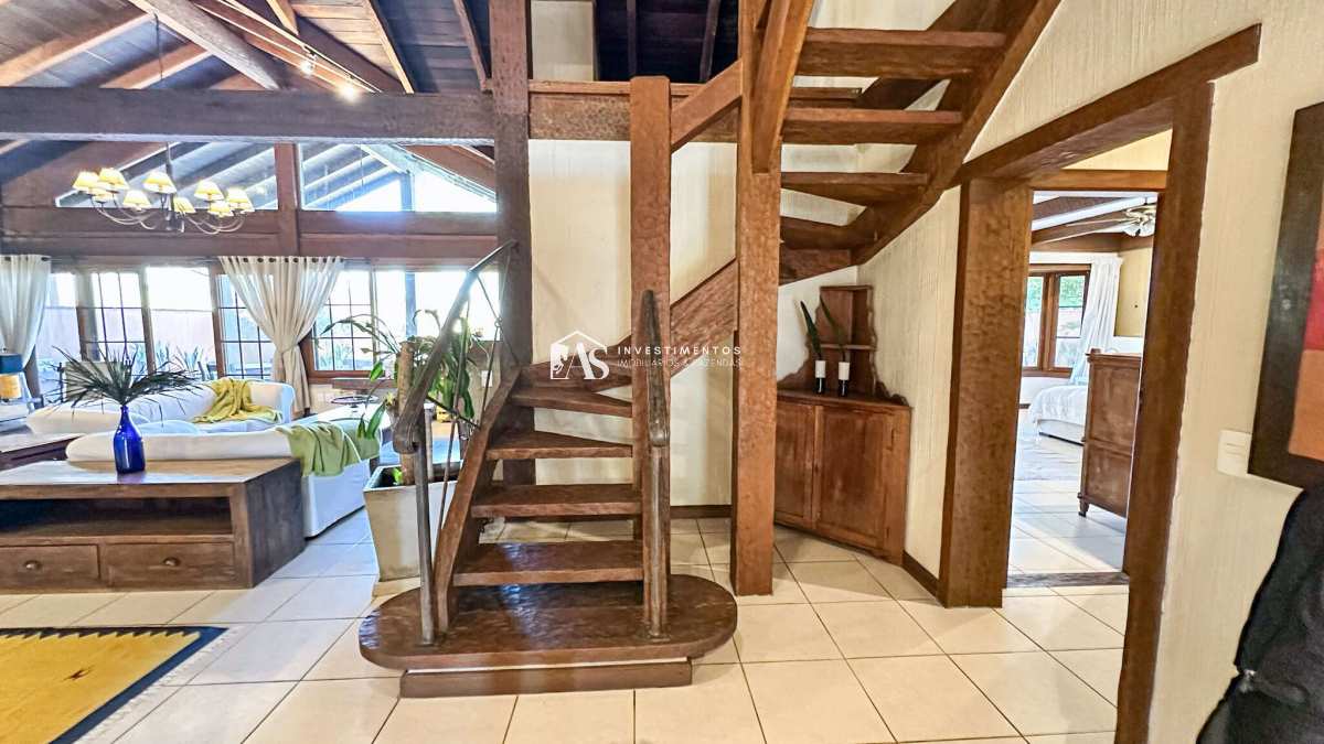 Com uma área construída de 596 m2, a casa dispõe de 4 suítes luxuosas, sendo 2 delas equipadas com banheira de hidromassagem e uma suíte para hóspedes.