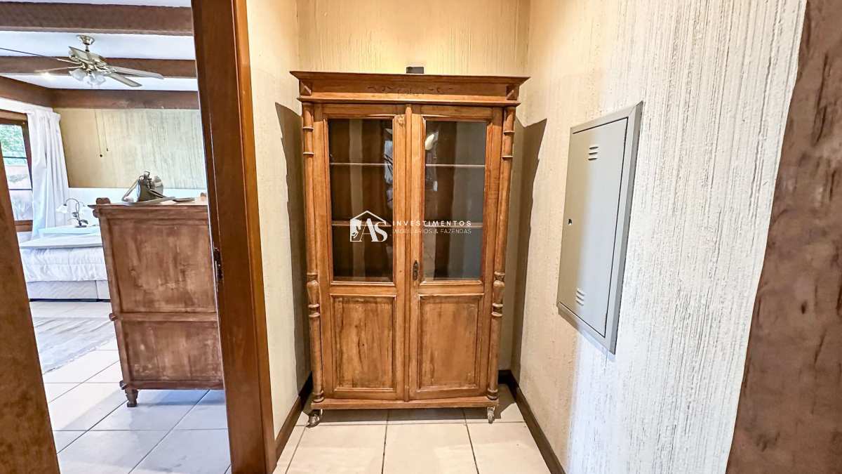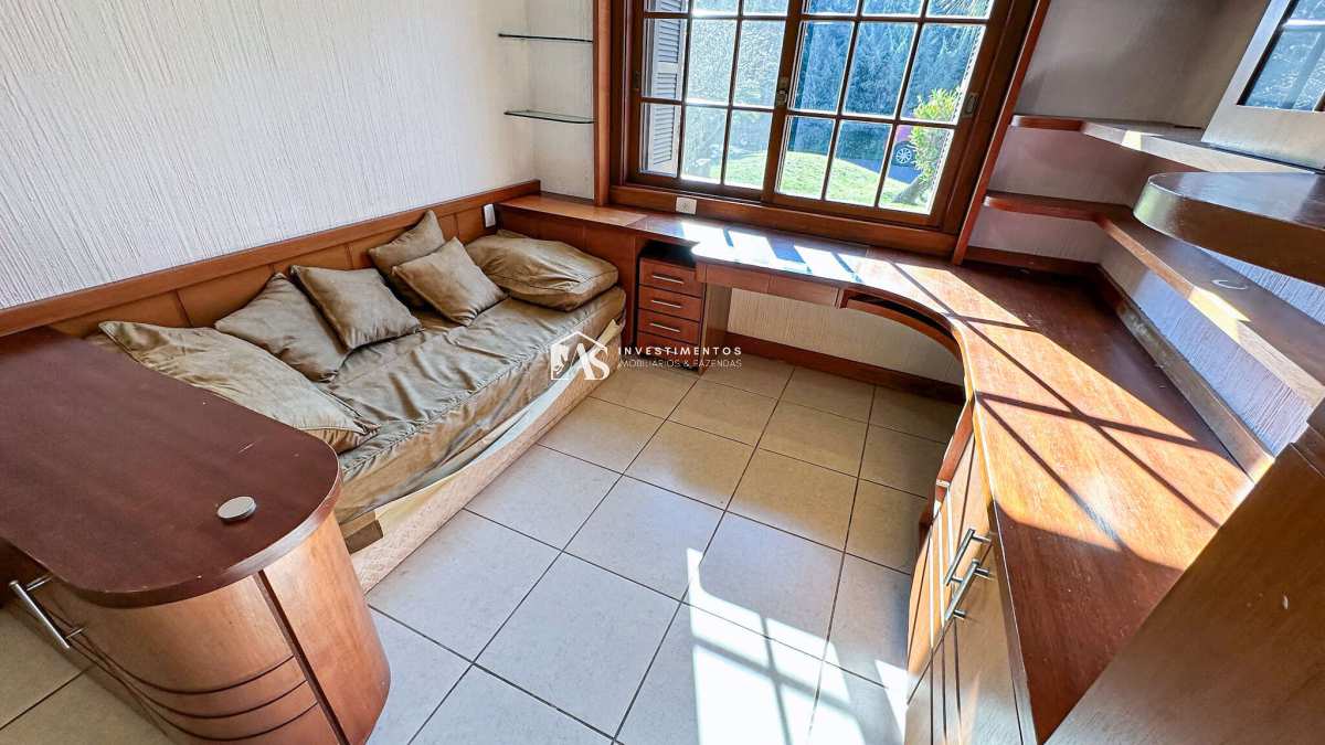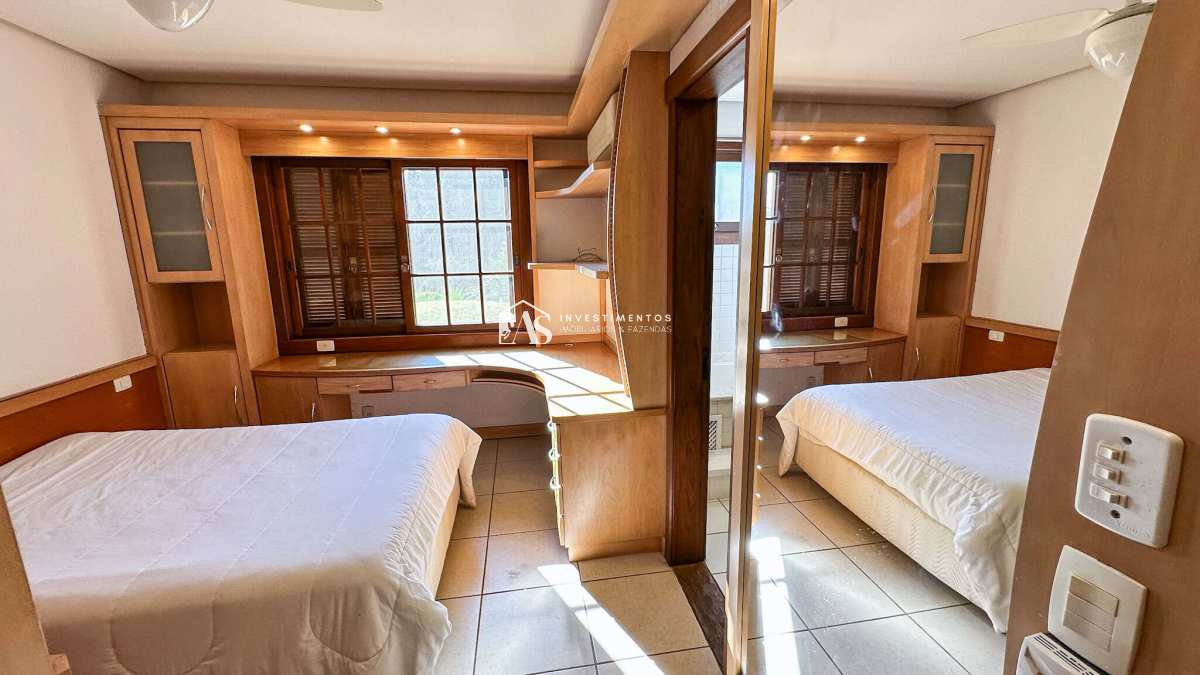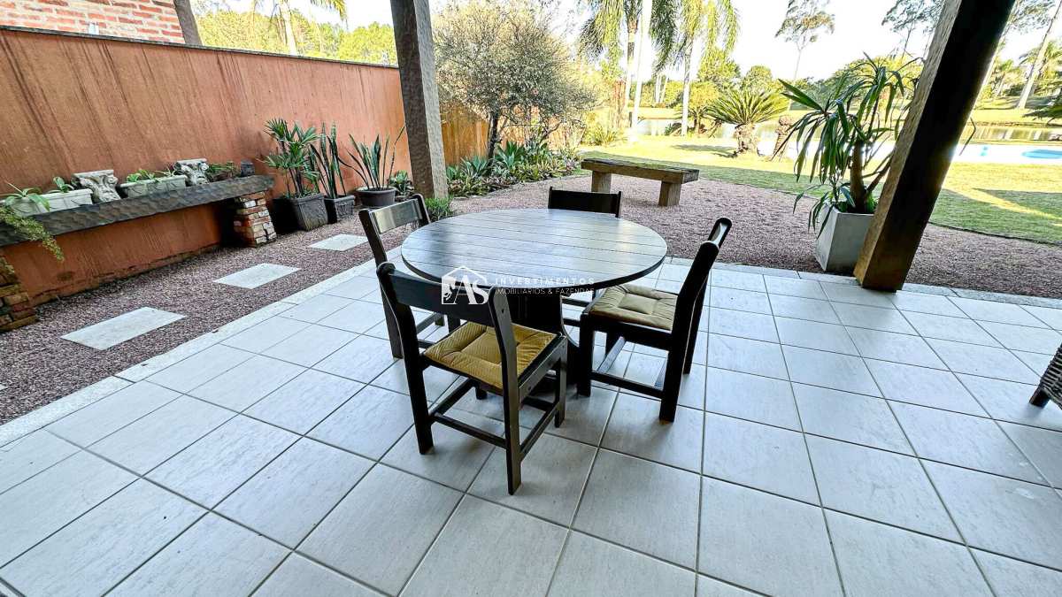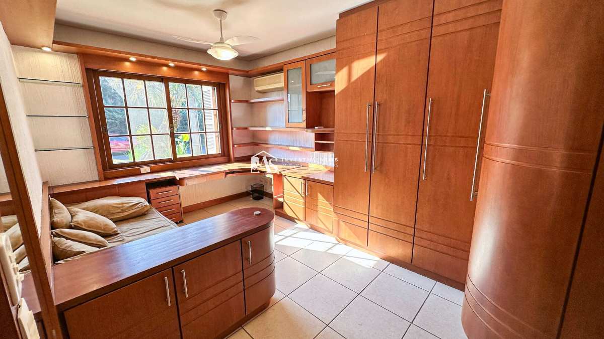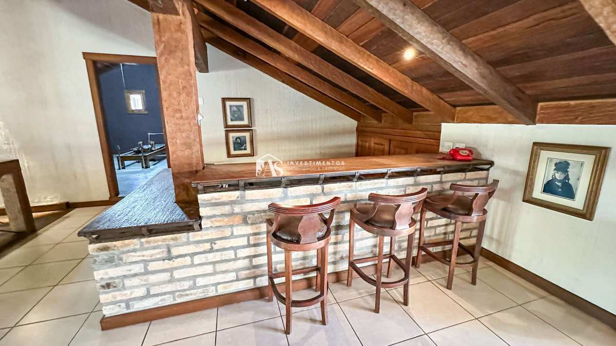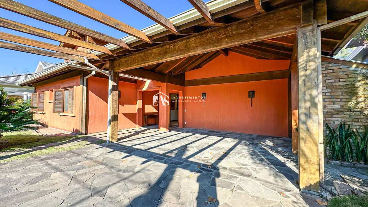 Com uma área construída de 596 m2, a casa dispõe de 4 suítes luxuosas, sendo 2 delas equipadas com banheira de hidromassagem e uma suíte para hóspedes.