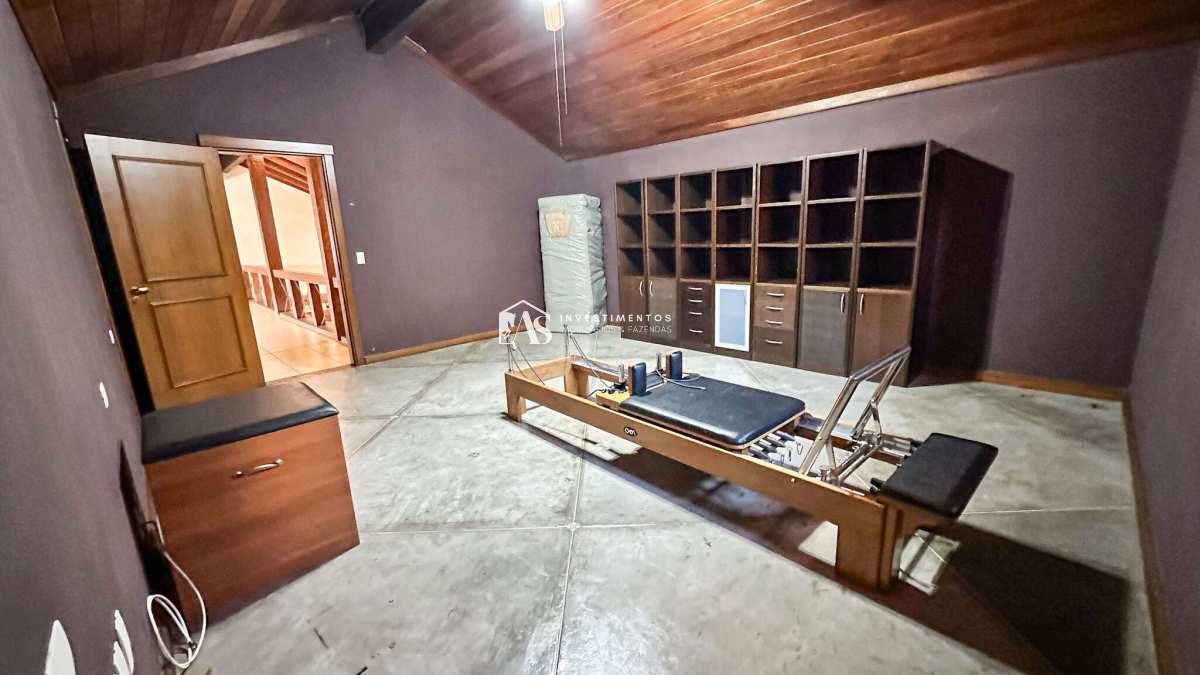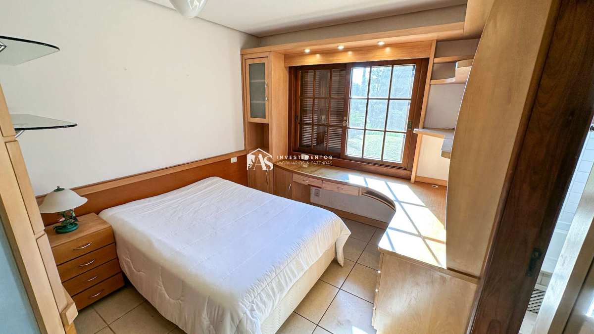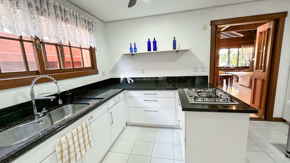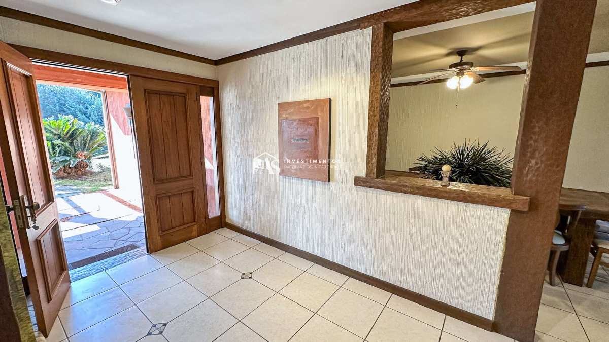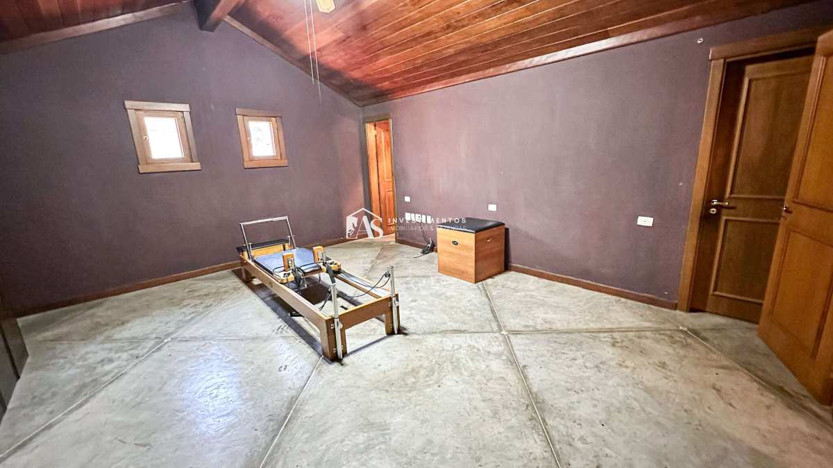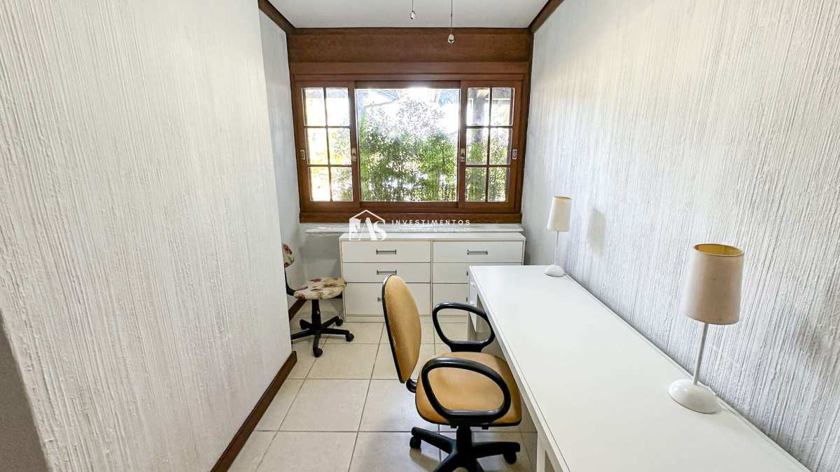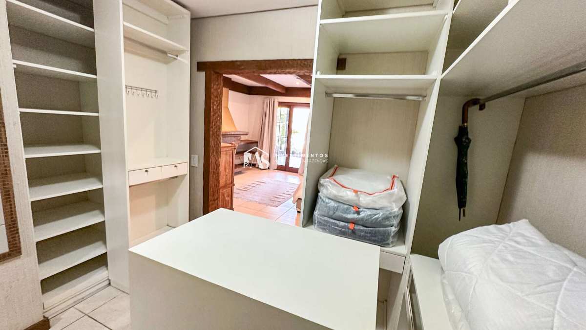 Com uma área construída de 596 m2, a casa dispõe de 4 suítes luxuosas, sendo 2 delas equipadas com banheira de hidromassagem e uma suíte para hóspedes.
