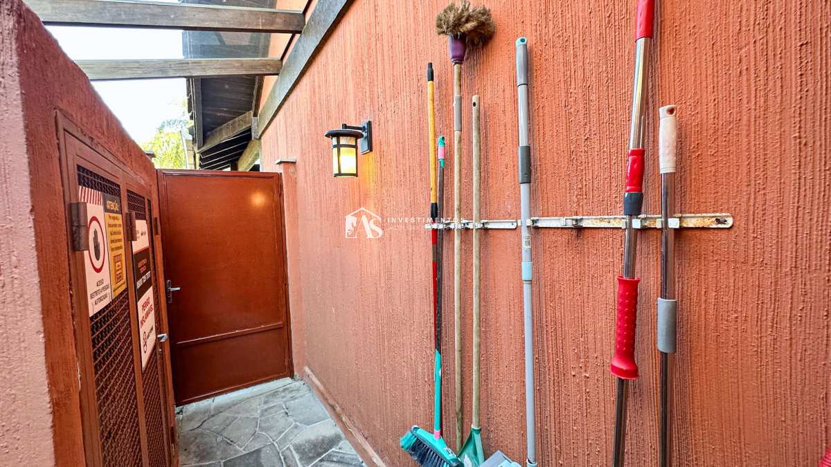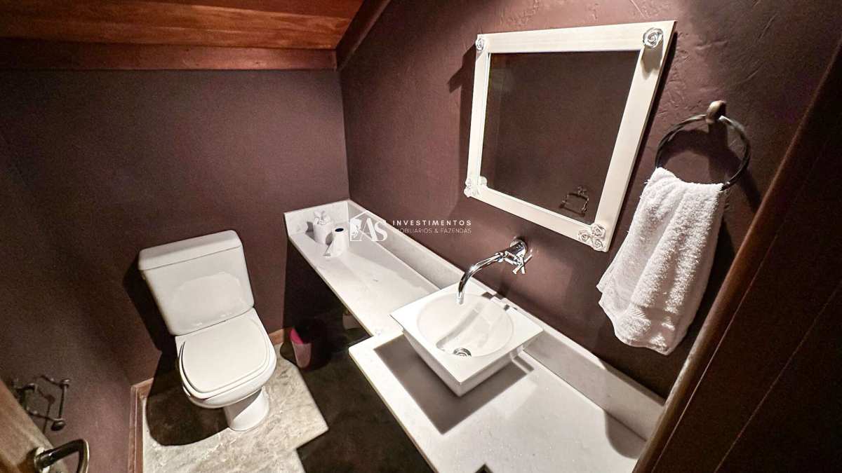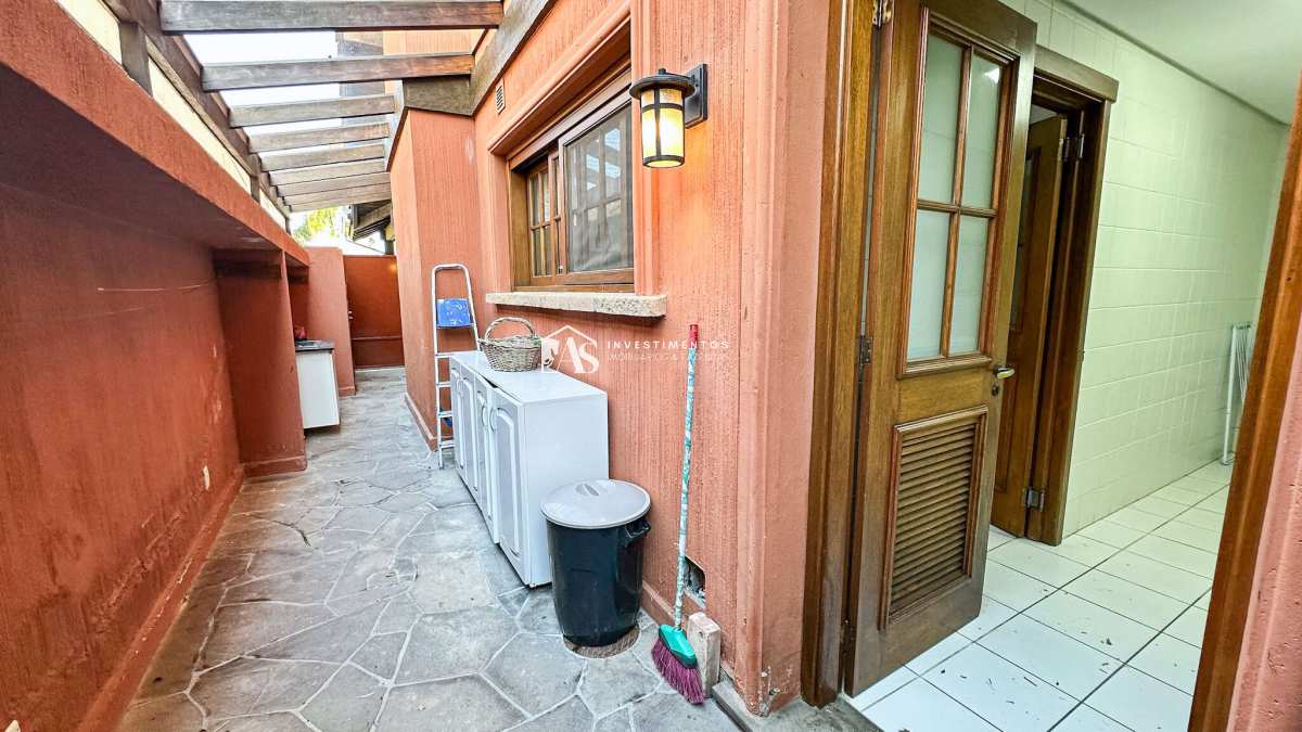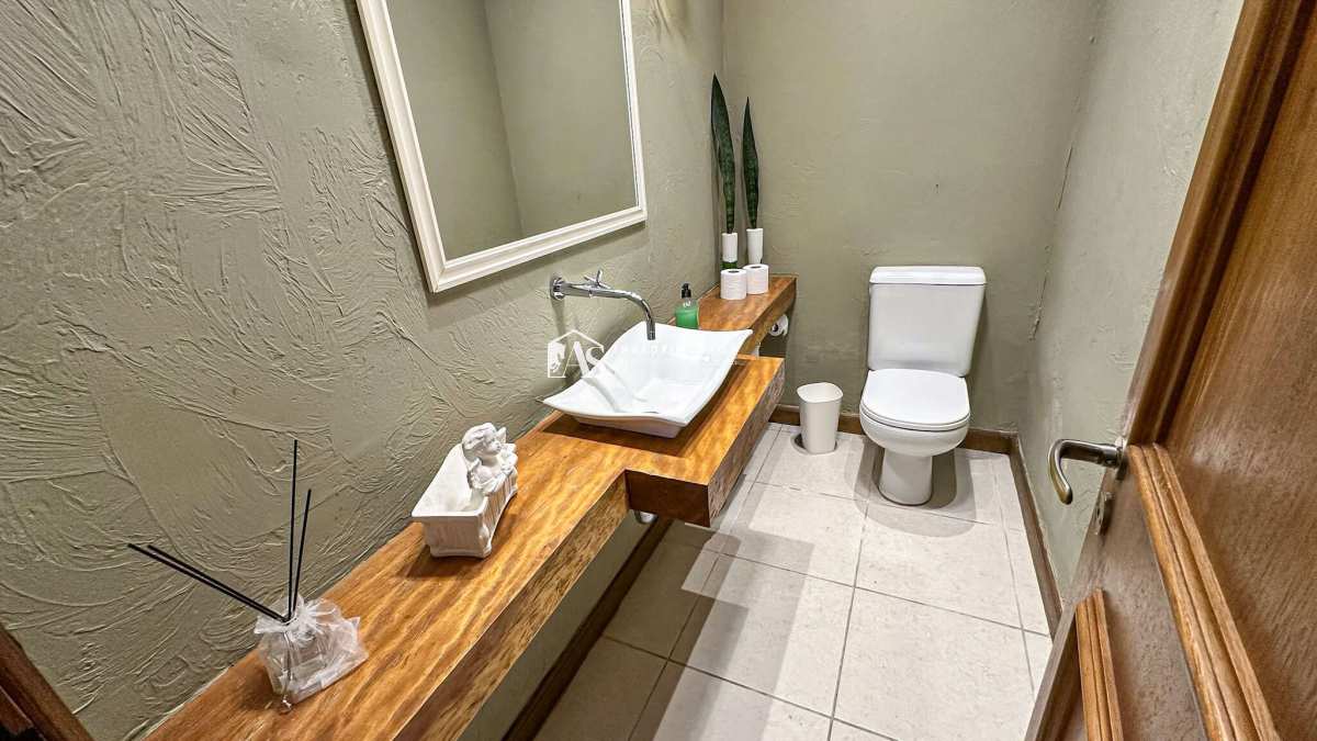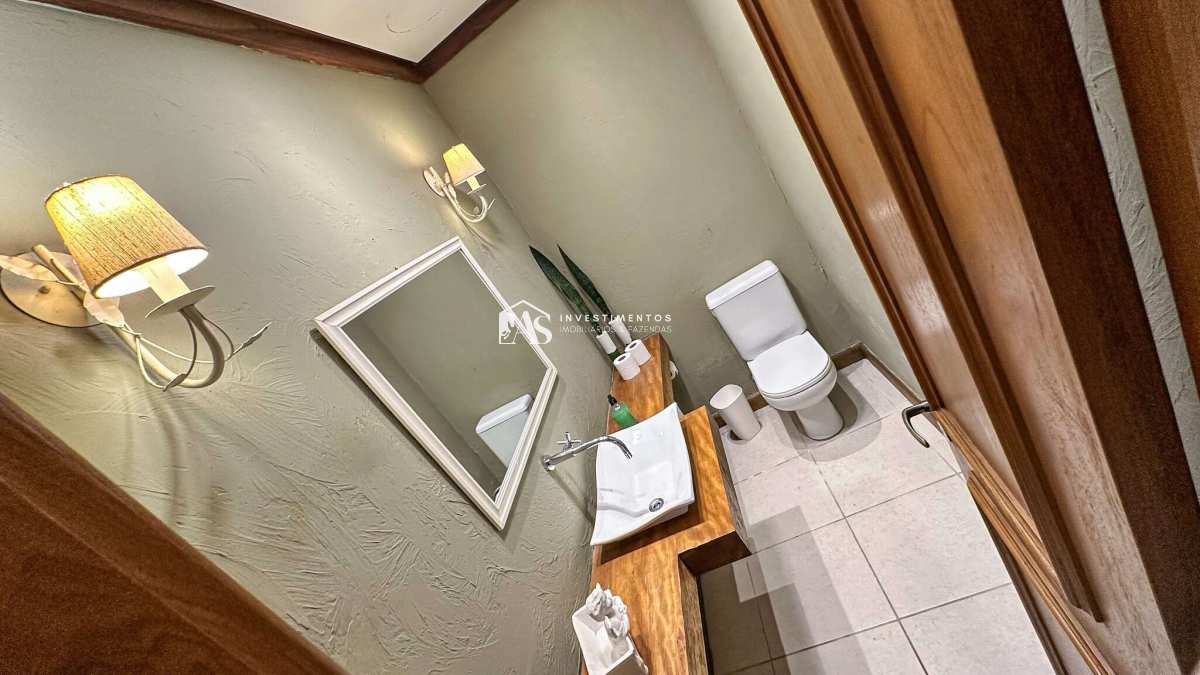 A casa possui 2 lavabos, um no andar térreo e outro no andar superior, cozinha, áreas de serviço interna e externa, depósito lateral e ampla sala de estar com lareira para acomodar com conforto três ambientes.