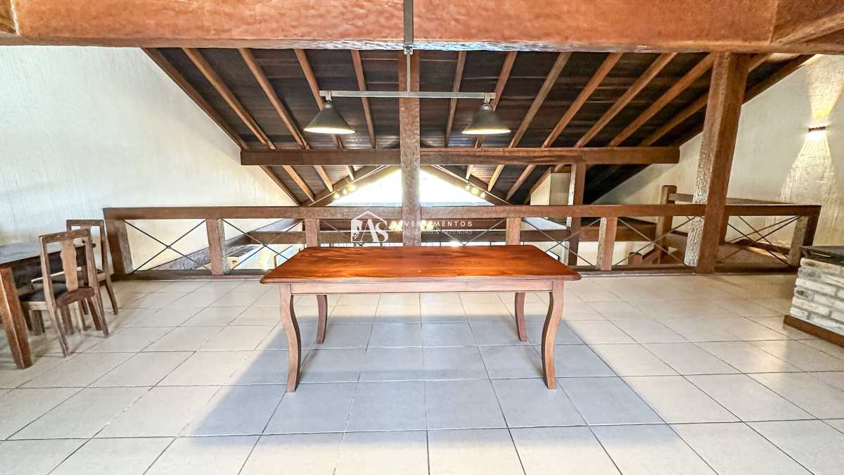 A piscina é cercada por uma atmosfera única, com duas churrasqueiras (uma interna e outra externa), além de um forno de pizza na interna.
