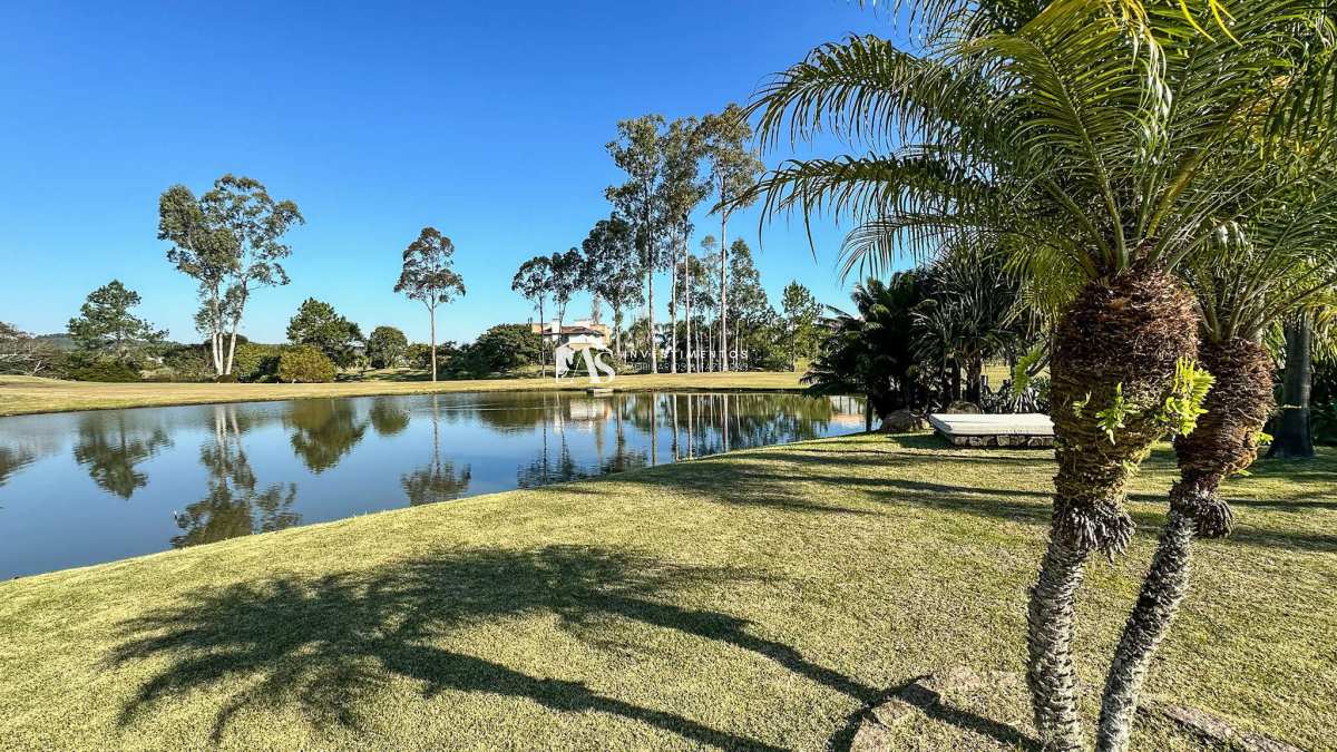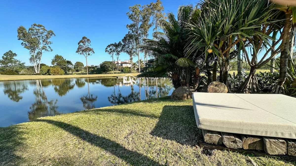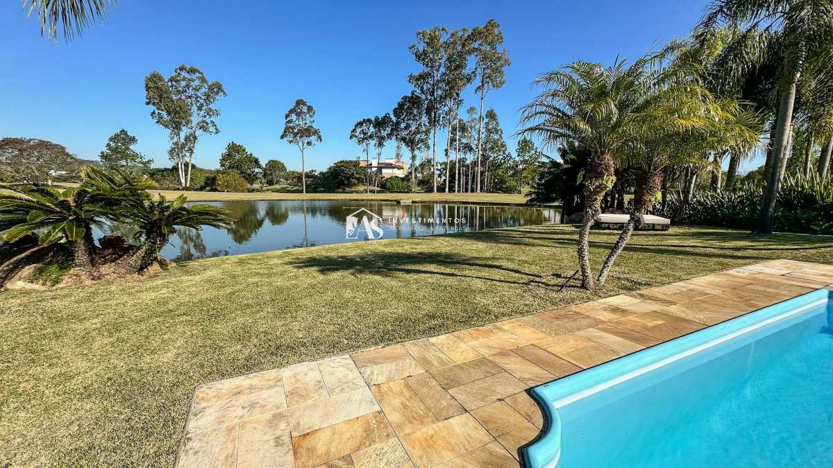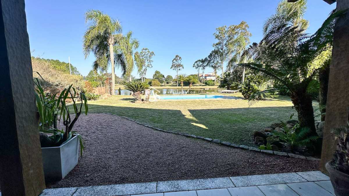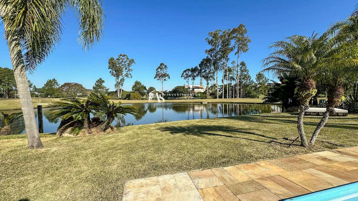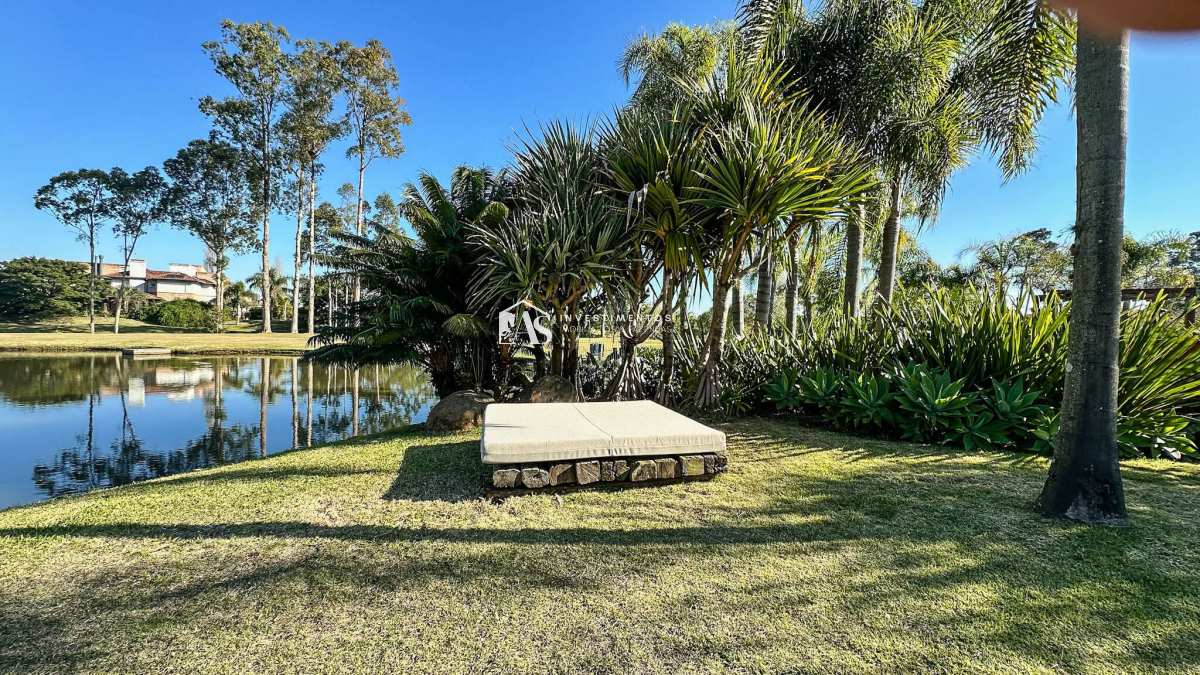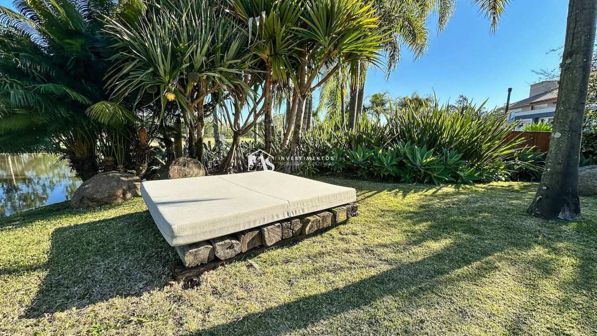 A irrigação automática do jardim evita trabalho adicional na manutenção e o grande lago nos fundos do terreno é uma visão encantadora que completa o ambiente inspirador dessa maravilhosa casa de alto padrão.