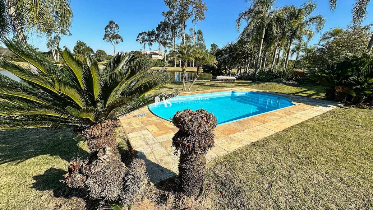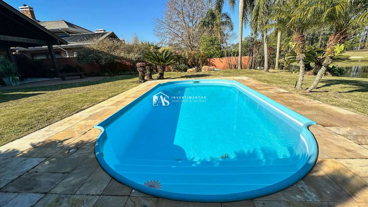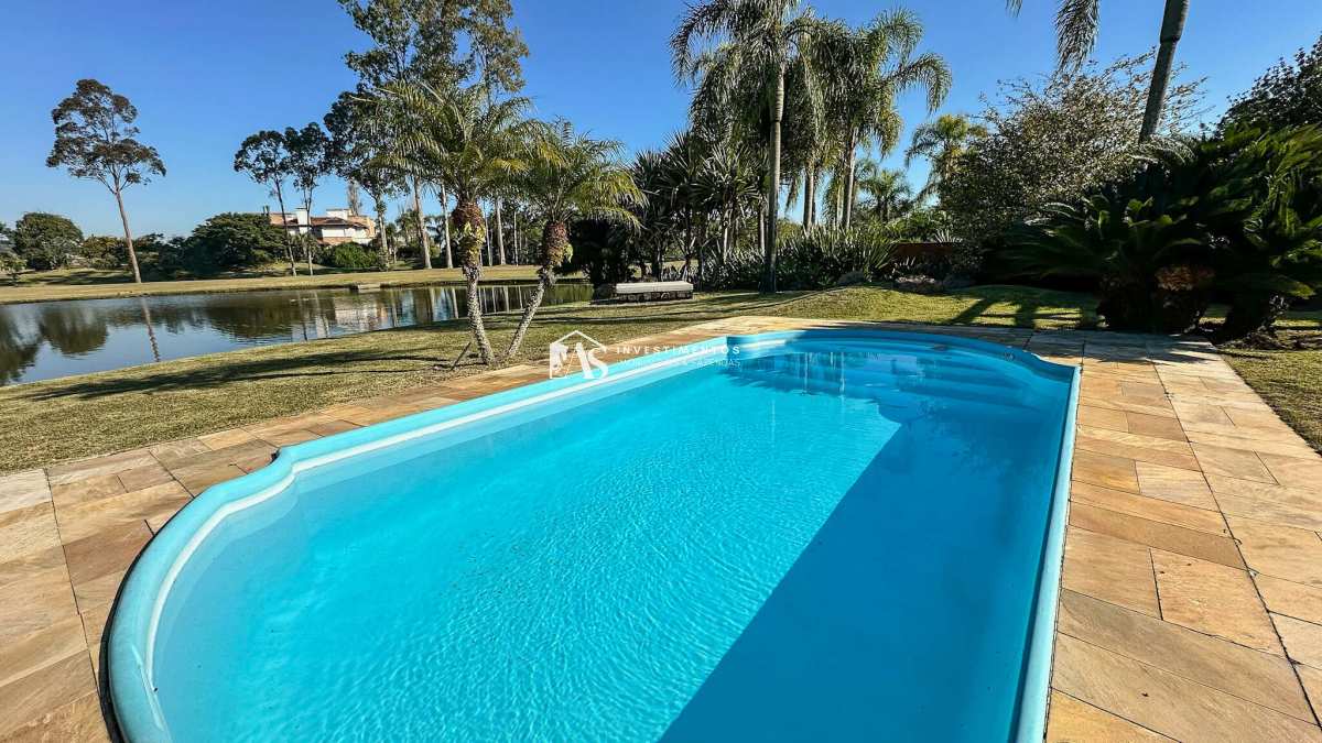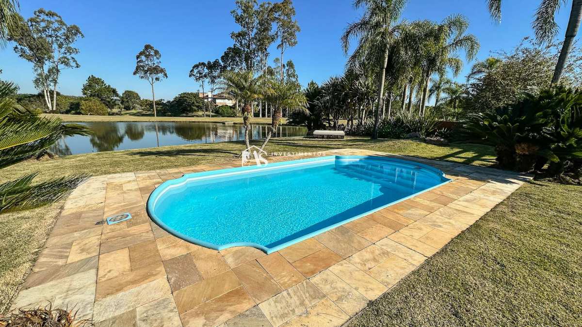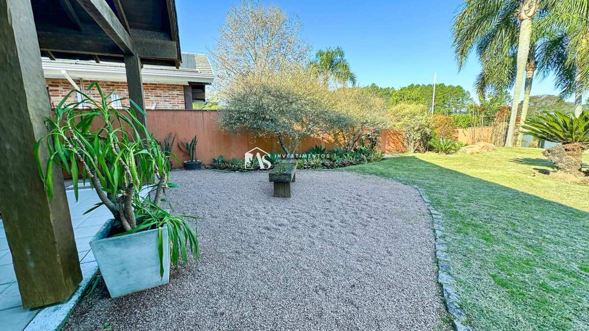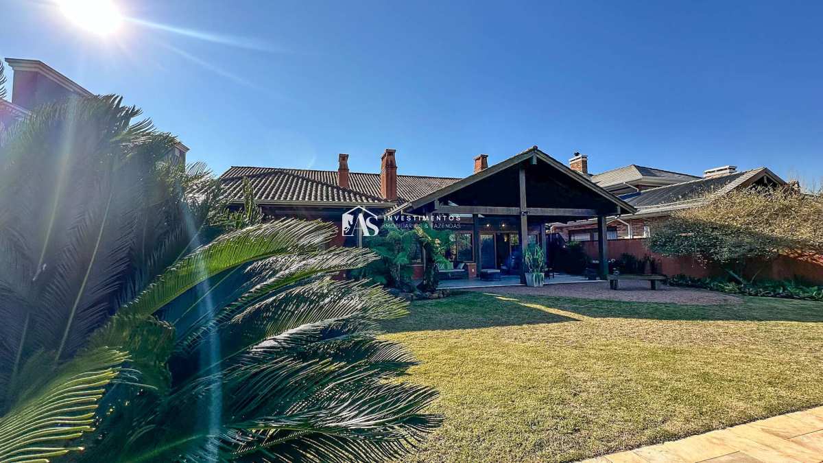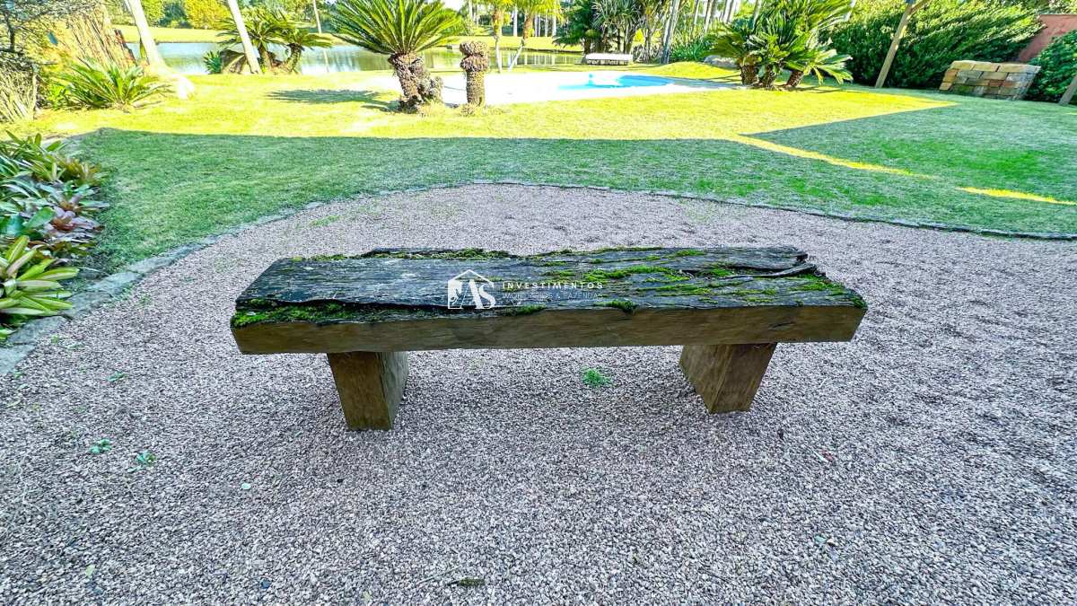 A irrigação automática do jardim evita trabalho adicional na manutenção e o grande lago nos fundos do terreno é uma visão encantadora que completa o ambiente inspirador dessa maravilhosa casa de alto padrão.