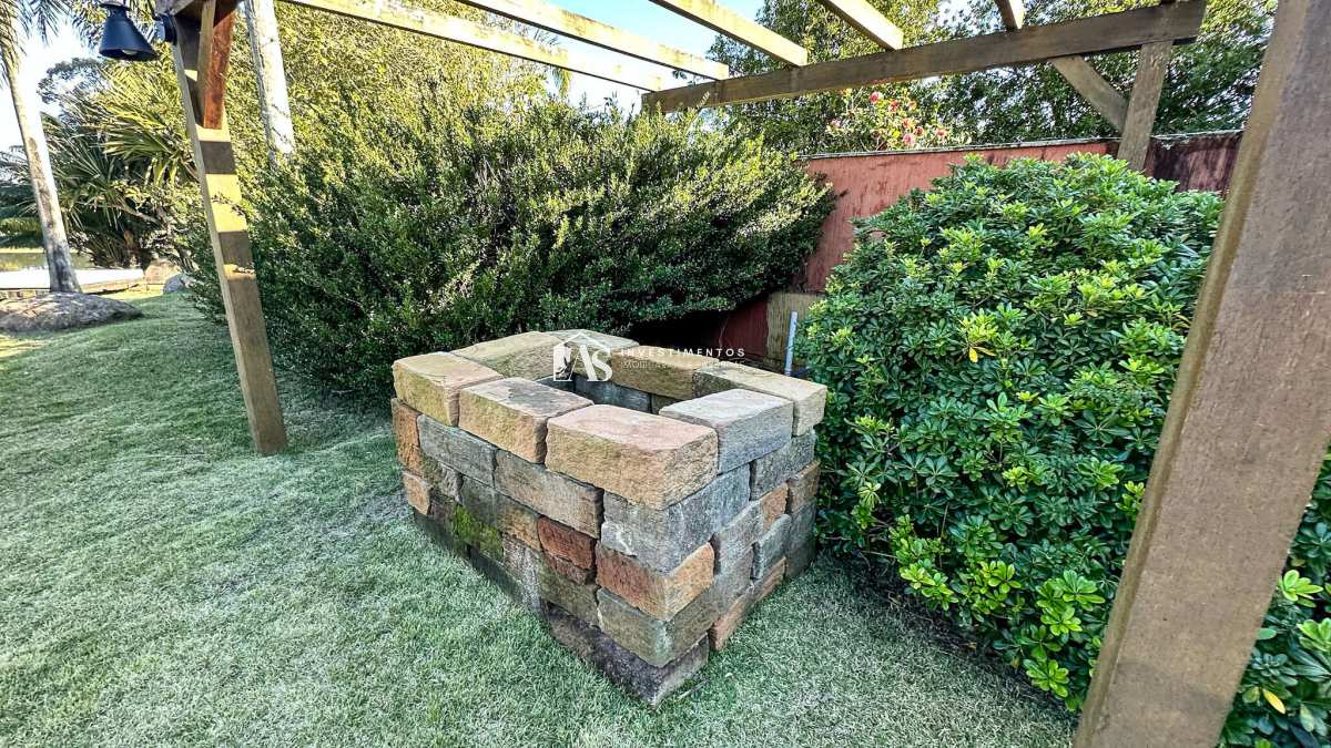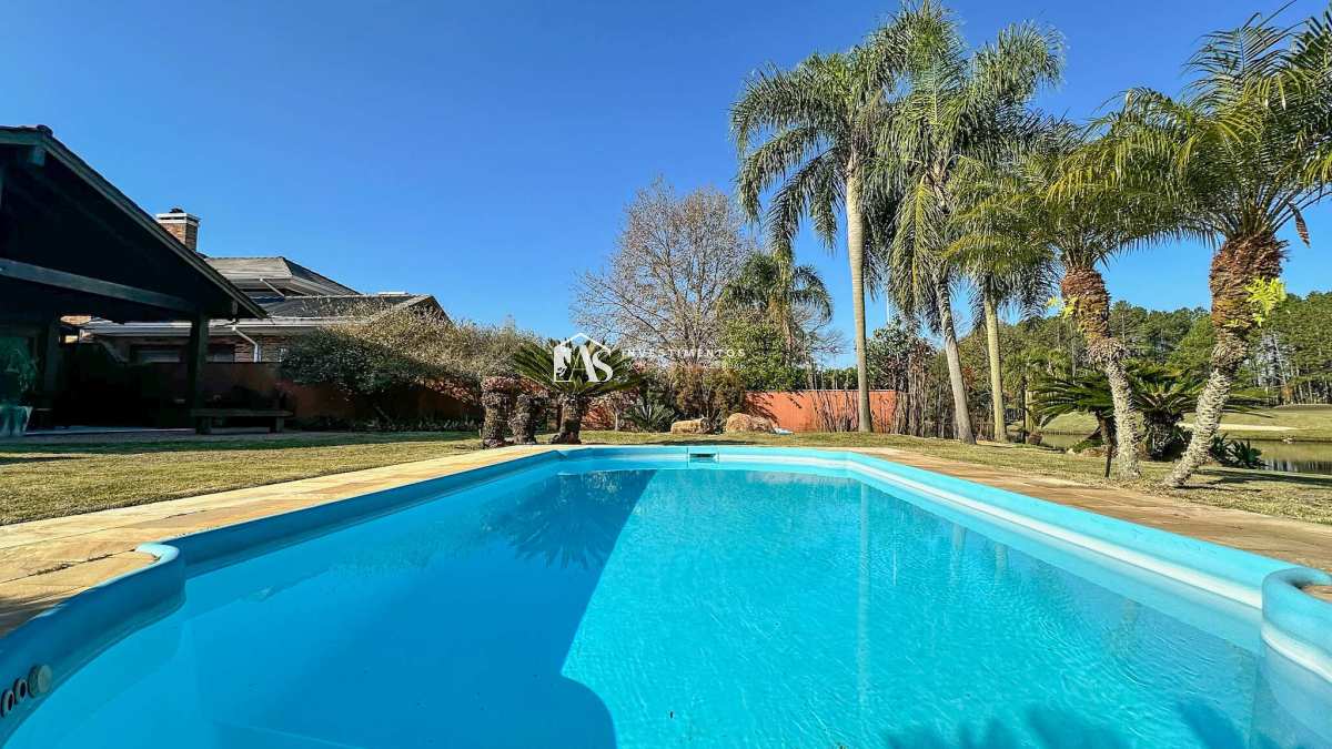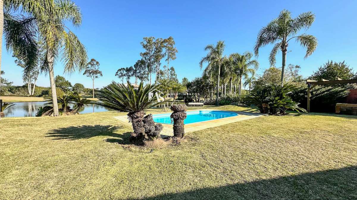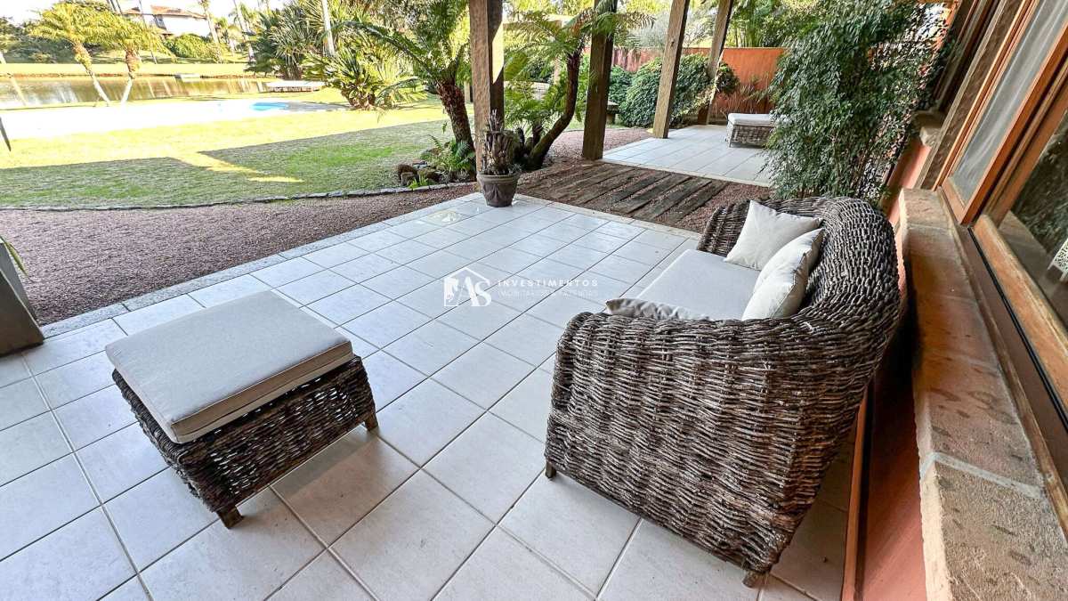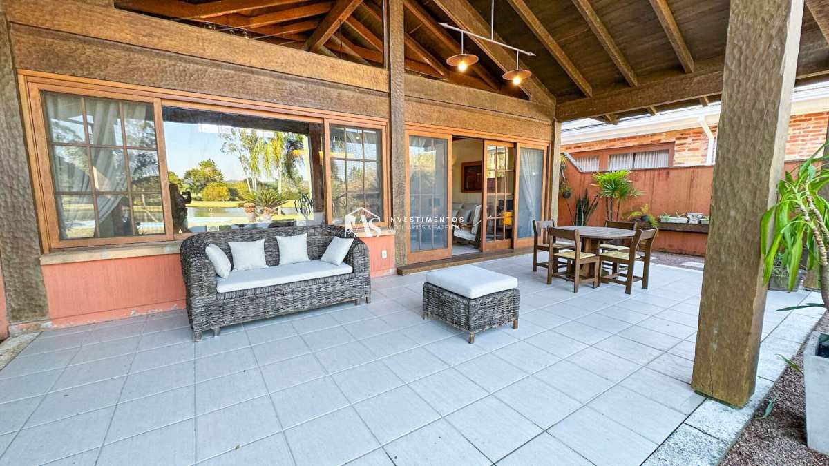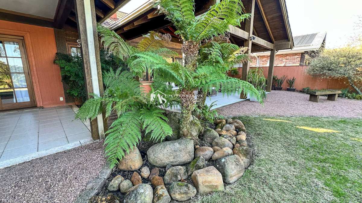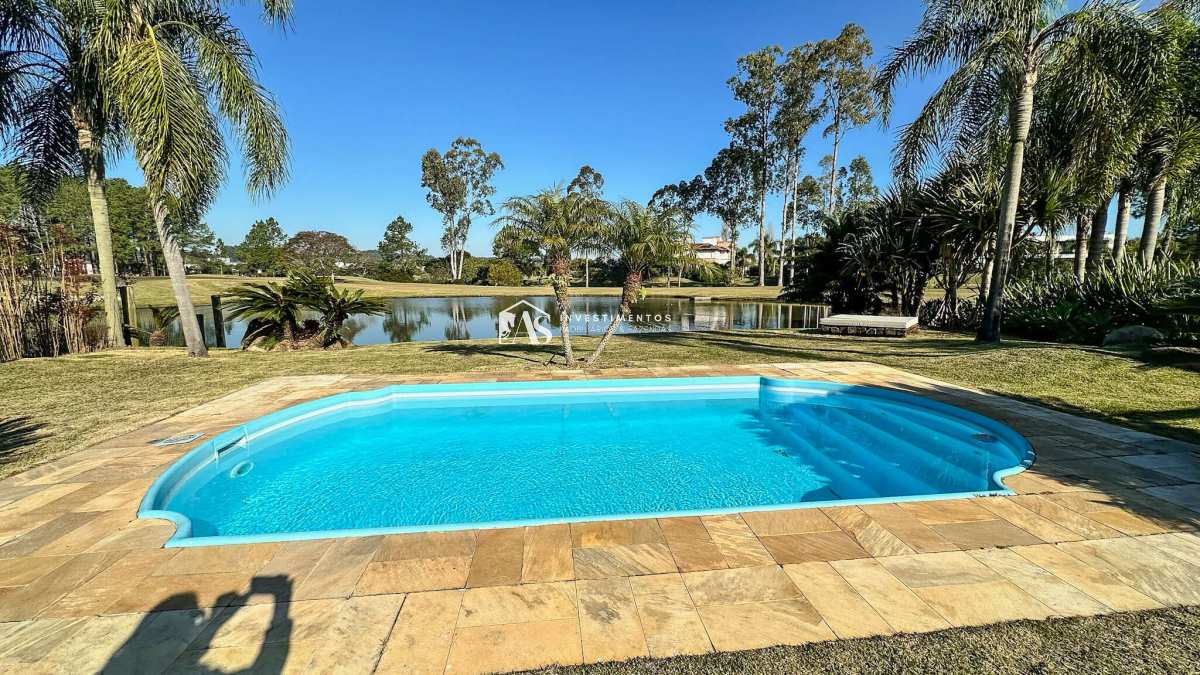 A irrigação automática do jardim evita trabalho adicional na manutenção e o grande lago nos fundos do terreno é uma visão encantadora que completa o ambiente inspirador dessa maravilhosa casa de alto padrão.