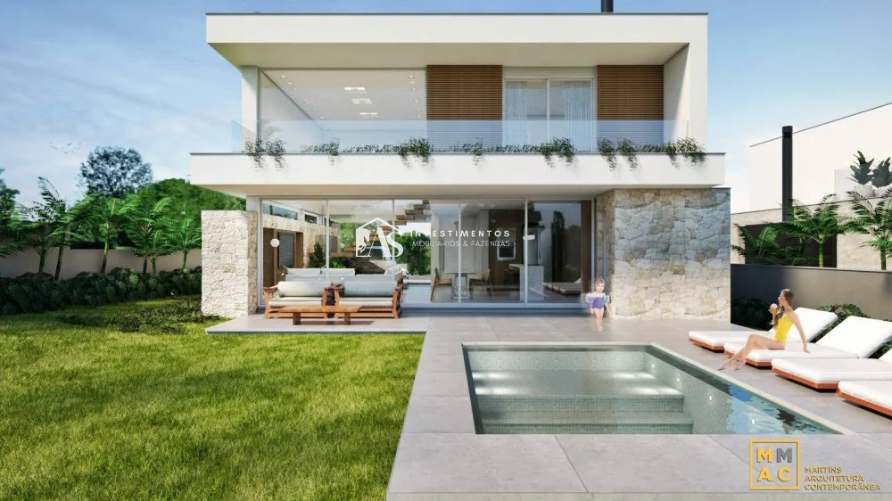 A casa projetada apresenta uma arquitetura deslumbrante e moderna, com um design que valoriza o conforto e a elegância em cada detalhe.